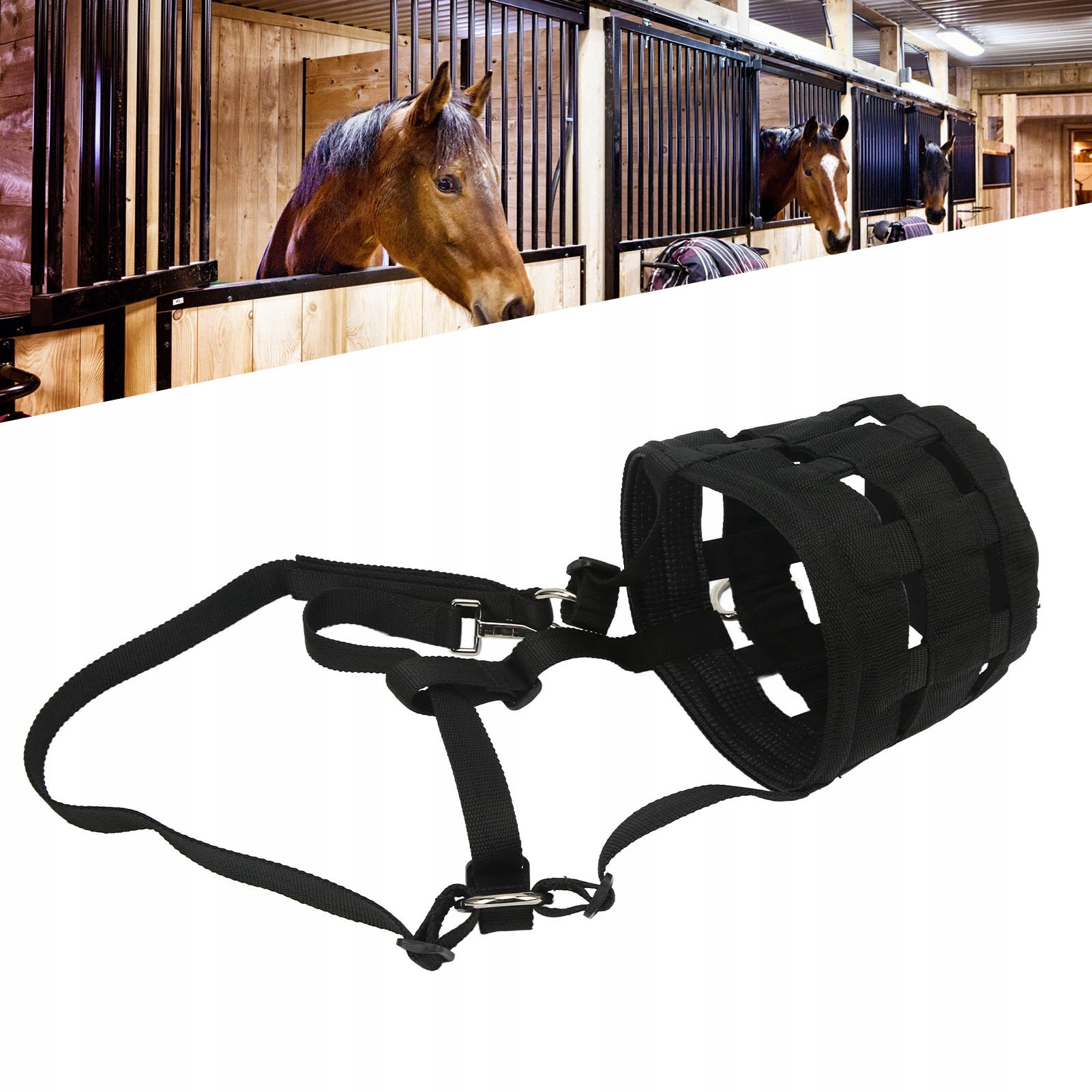 Черный намордник для пасущейся лошади, легко дышащая крышка для рта лошади с большими отверстиями, противоскользящие намордники для верховой езды