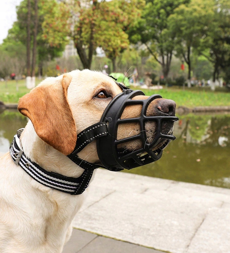 Намордник должен быть удобным для собаки. Достаточно большой, чтобы собака могла свободно открывать пасть, тяжело дышать и зевать. Он не может упасть или прижать собаку.