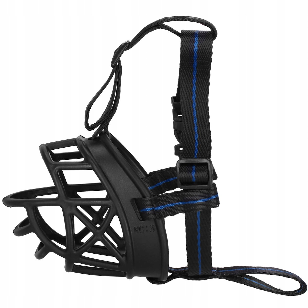 Намордник изготовлен из высококачественного полиэтилена, гибок и легко чистится. > Тканевые ремни дают возможность регулировки и возможность идеально подогнать морду под размер головы и шеи животного.