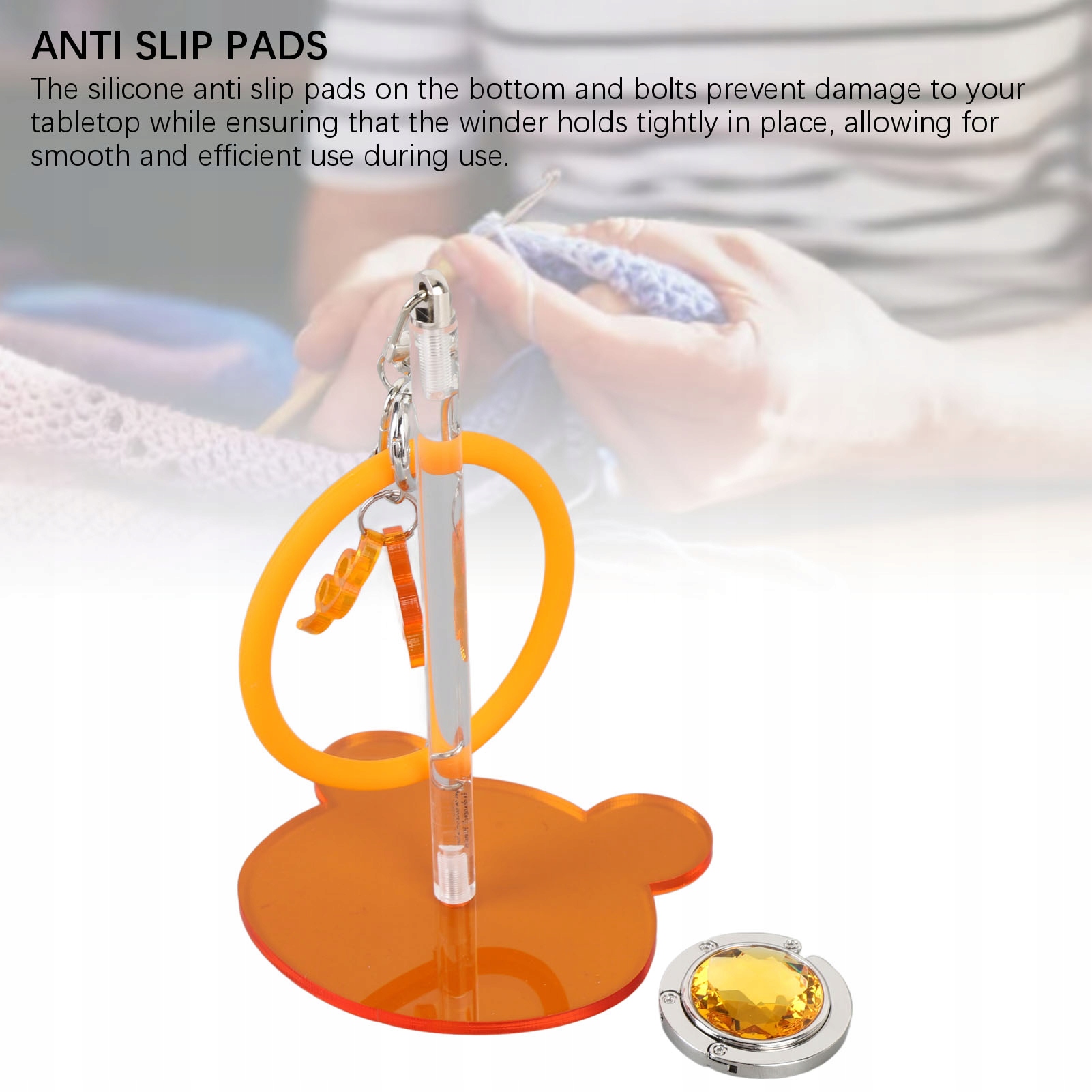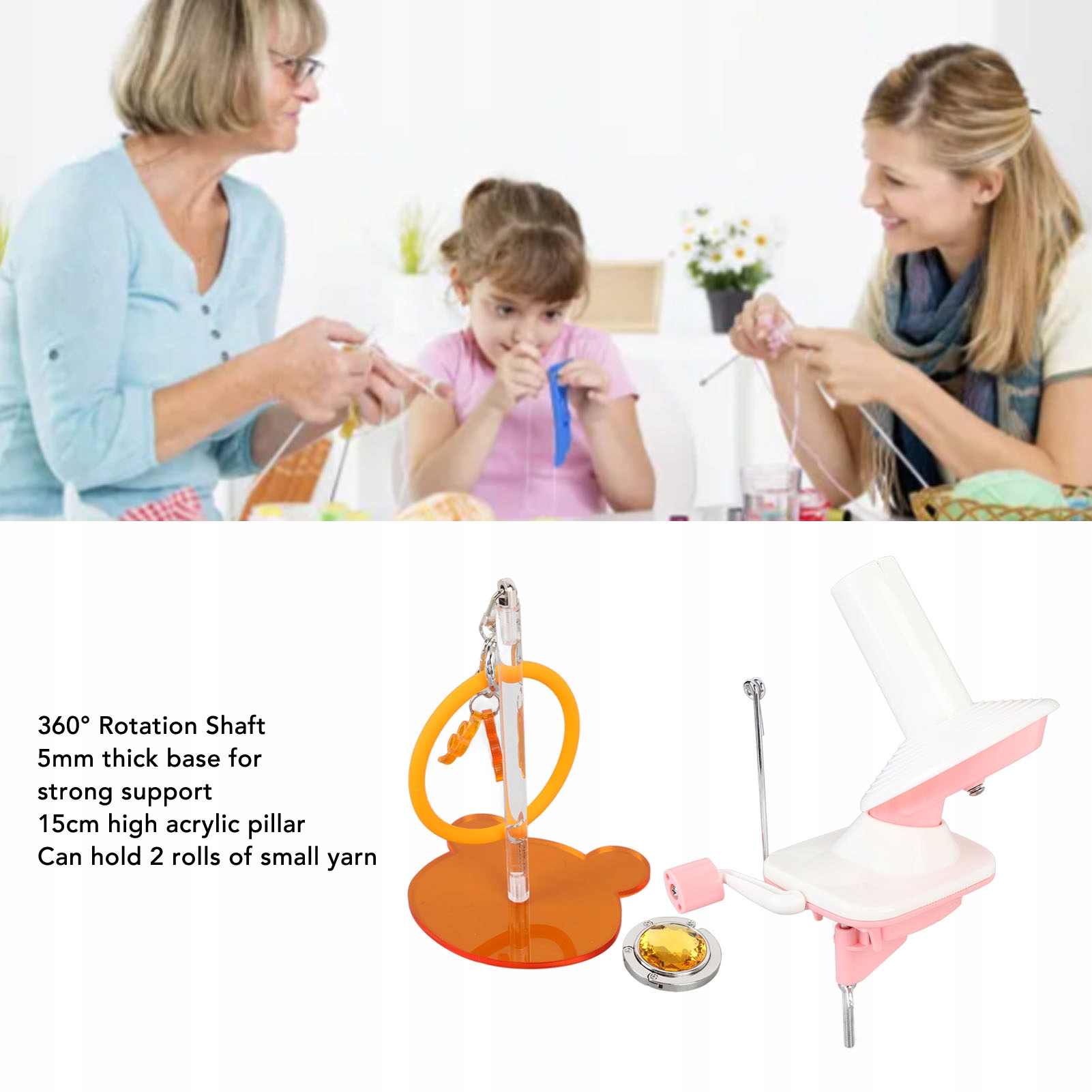 6. ВРАЩАЮЩИЙСЯ НА 360° ВАЛ: благодаря основанию толщиной 5 мм и акриловой колонне высотой 15 см он может вместить до 2 рулонов небольшой пряжи. Подходит для намотки пряжи большего размера или соединения прядей.