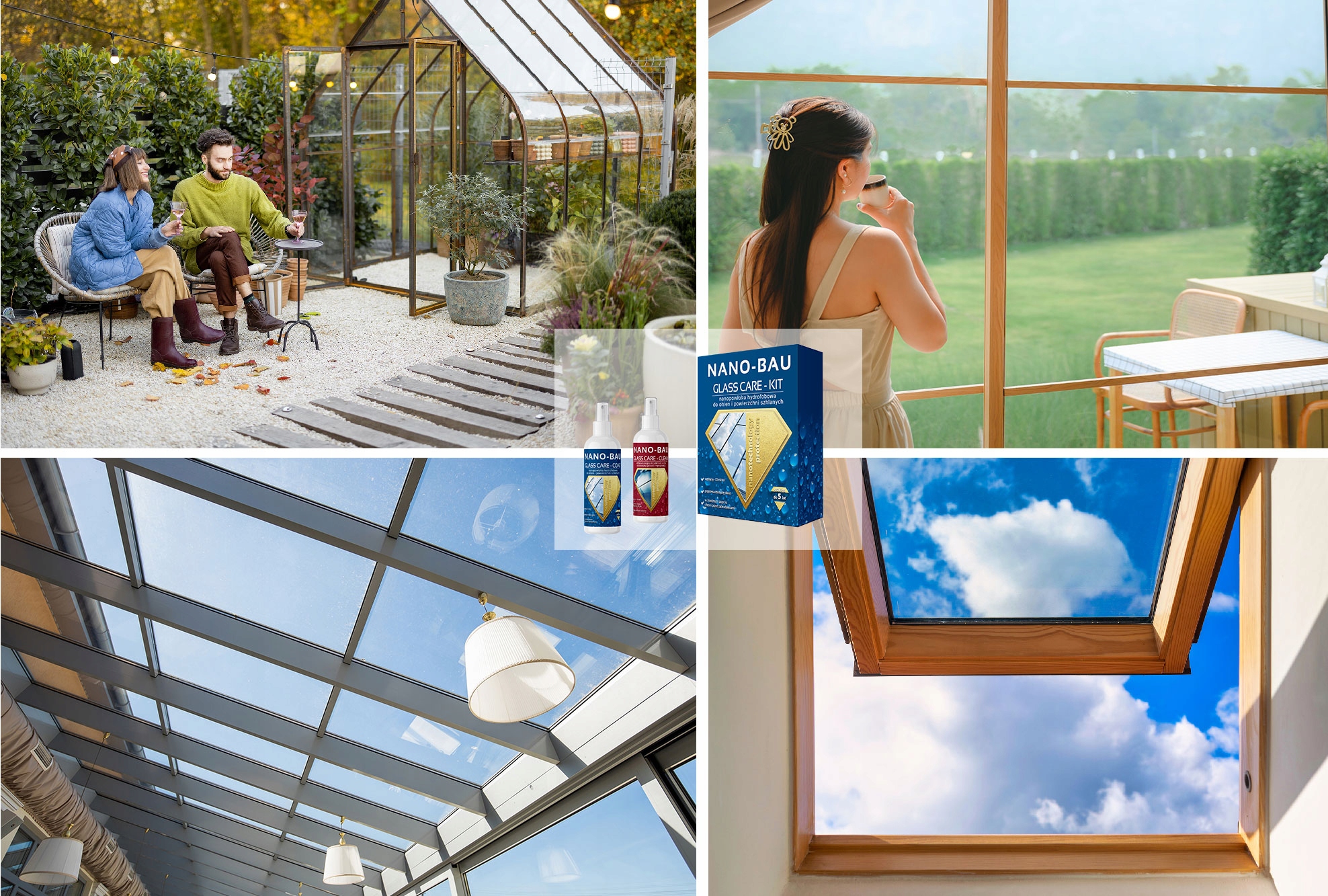 Нанобау для стекла для окон и стекла - это всеобъемлющий набор, предназначенный для постоянной защиты и пропитки стеклянных поверхностей, таких как окна, фасады, теплицы, оранжерея и другие стаканы, изготовленные из стекла. Благодаря использованию кремниевых наночастиц, этот препарат химически сочетается со стеклом, что дает ему сильные гидрофобные свойства, которые отражают загрязнение и воду.