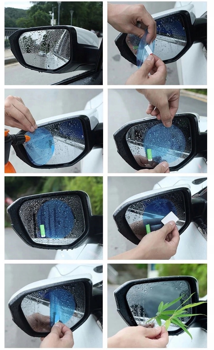 Набор из двух защитных пленок Universal NANO SCREEN MIRROR CAR для боковых зеркал автомобиля – идеальный ответ на проблему плохой видимости в дождливую или туманную погоду.