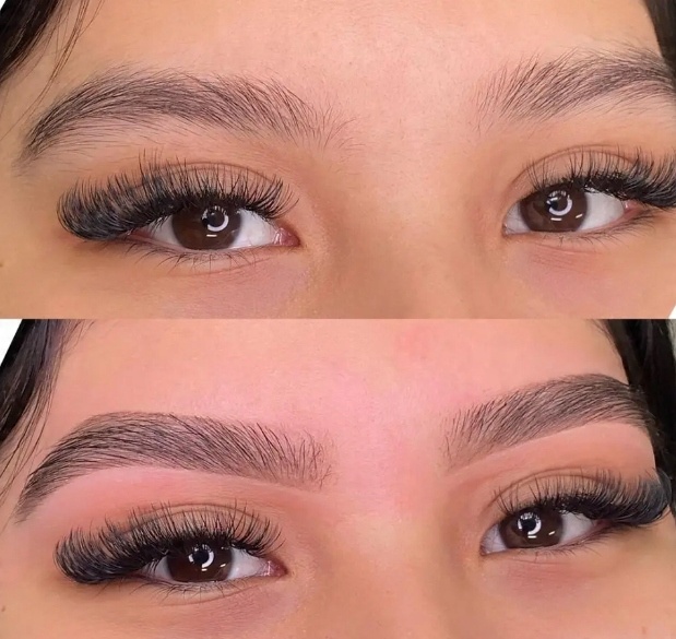 Эта процедура предполагает фиксацию волосков так, чтобы они удерживались в одном месте, и позволяет четко обозначить брови.