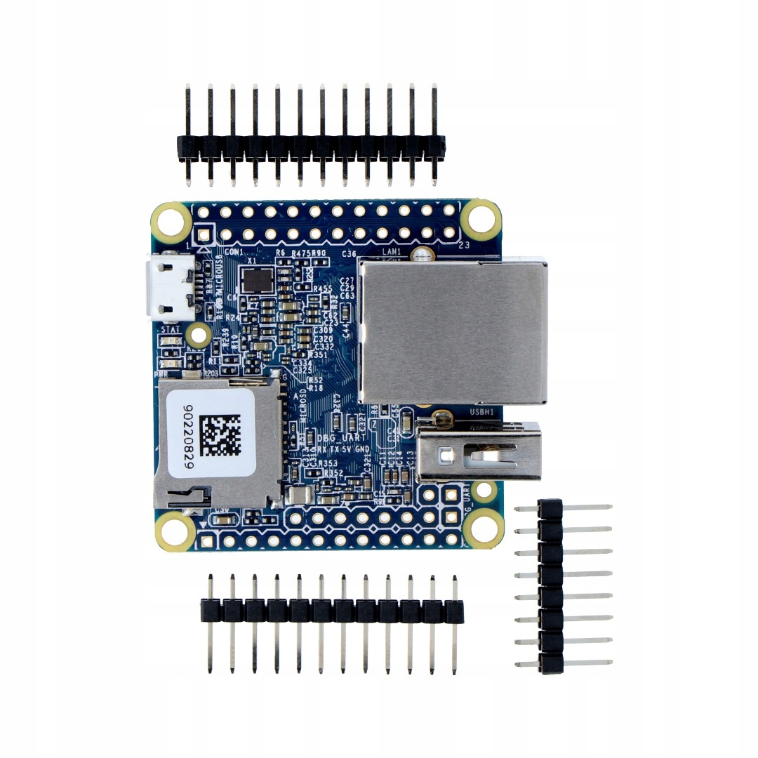 Миниатюрный компьютер NanoPi версии Neo 1.4 с четырехъядерным процессором Allwinner H3 ARM Cortex-A7 1,2 ГГц. Плата имеет 512 МБ оперативной памяти DDR3, встроенный порт Ethernet и хост-разъем USB + 2 x USB на контактах 2,54 мм, 36 GPIO, разъем для карты microSD. Работает с системами производителя u-boot и UbuntuCore.
