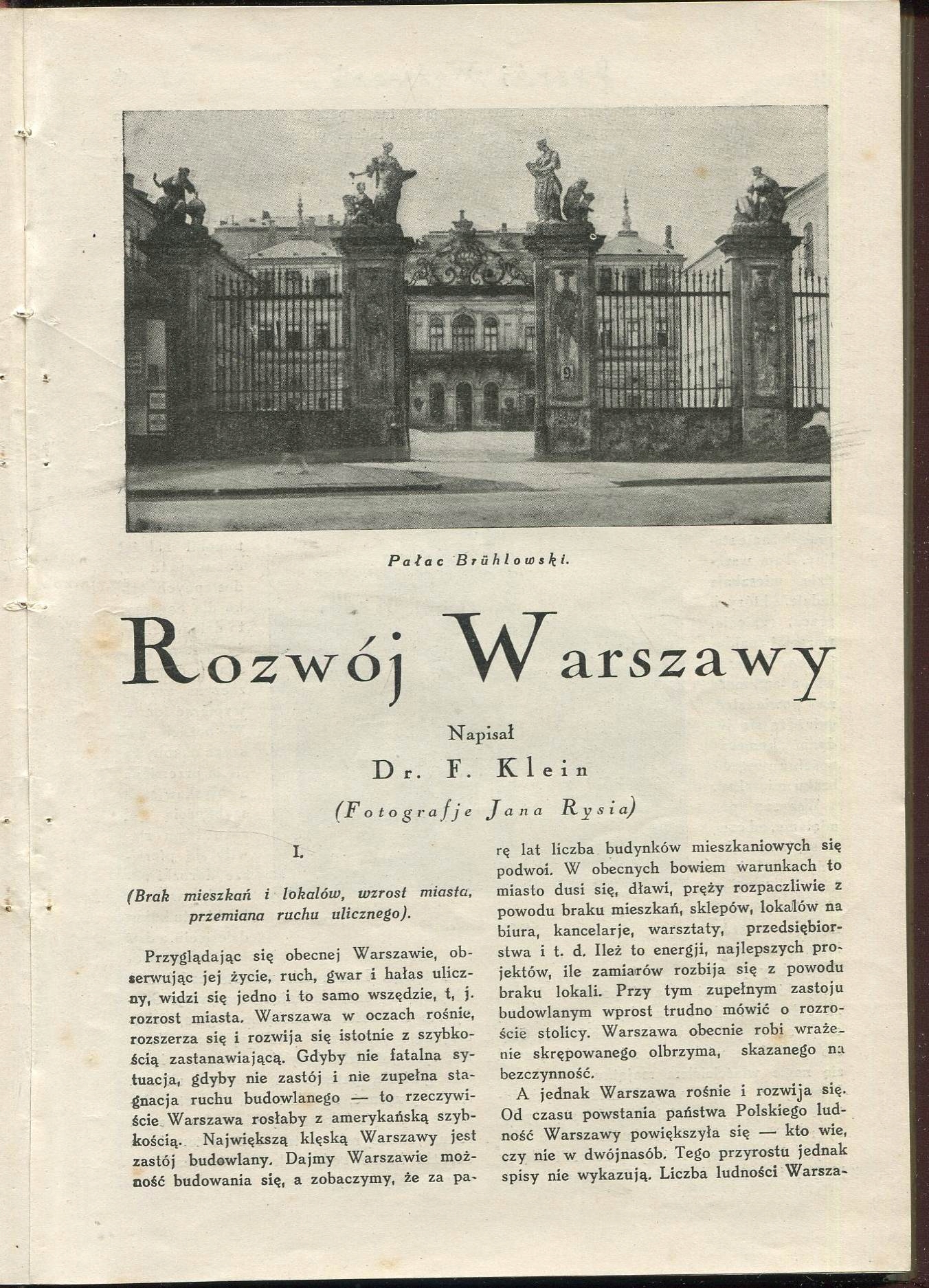 - F. Кляйн: Развитие Варшавы. Фотографии: Ян Рысь.