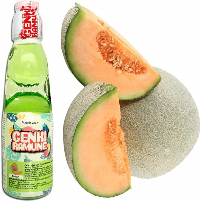 Описание: Апельсиновый напиток со вкусом дыни в необычной стеклянной бутылке с шариком, производства японской компании Genki Ramune. Японский газированный оранжад известен во всем мире благодаря необычной форме бутылки и своеобразному открыванию. Способ открытия каждый раз удивляет, что определенно разнообразит общественные мероприятия. Напиток имеет множество вкусов, традиционные газированные напитки и множество различных фруктовых вкусов.