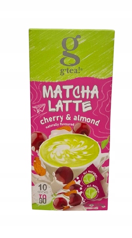 Ингредиенты: порошкообразное молоко обезжирено (63,4%), сахарная порошка (сахарный порошок, картофельный крахмал), чай матча (10%), чай в матче (10%), матовый чай (10%), натуральный аромат вишни, натуральный миндальный аморат.