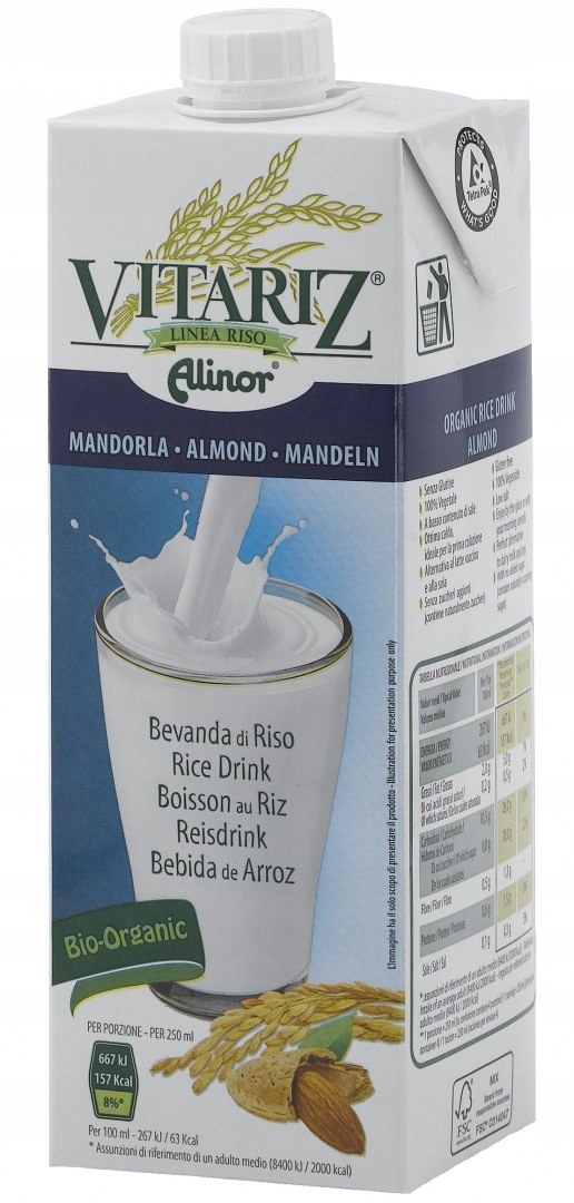 Для ценителей сладкого вкуса миндаля создан рис Витариз «Молочный» с миндалем. Идеально подходит для обогащения кофе, десертов и блюд, а также в качестве вкусного, полезного напитка на основе миндаля. Полезные для здоровья свойства Миндальные орехи известны человечеству на протяжении веков.Богатые ненасыщенными жирными кислотами, рибофлавином и калием должны быть постоянным компонентом нашего рациона.Рисовое «молоко», напротив, богато клетчаткой, витаминами и минералами. Это отличный источник витаминов группы В, витамина Е, цинка, магния и селена, а высокое содержание калия и антиоксидантов снижает артериальное давление. Это хороший союзник в борьбе со старением кожи и уходе за волосами. Рисовое «молоко» Витариз с миндалем с бархатистым, сладким и характерным миндальным вкусом – 100% растительный продукт, без добавления сахара и загустителей, производимый только на основе натуральных ингредиентов, полученных в результате органического земледелия.