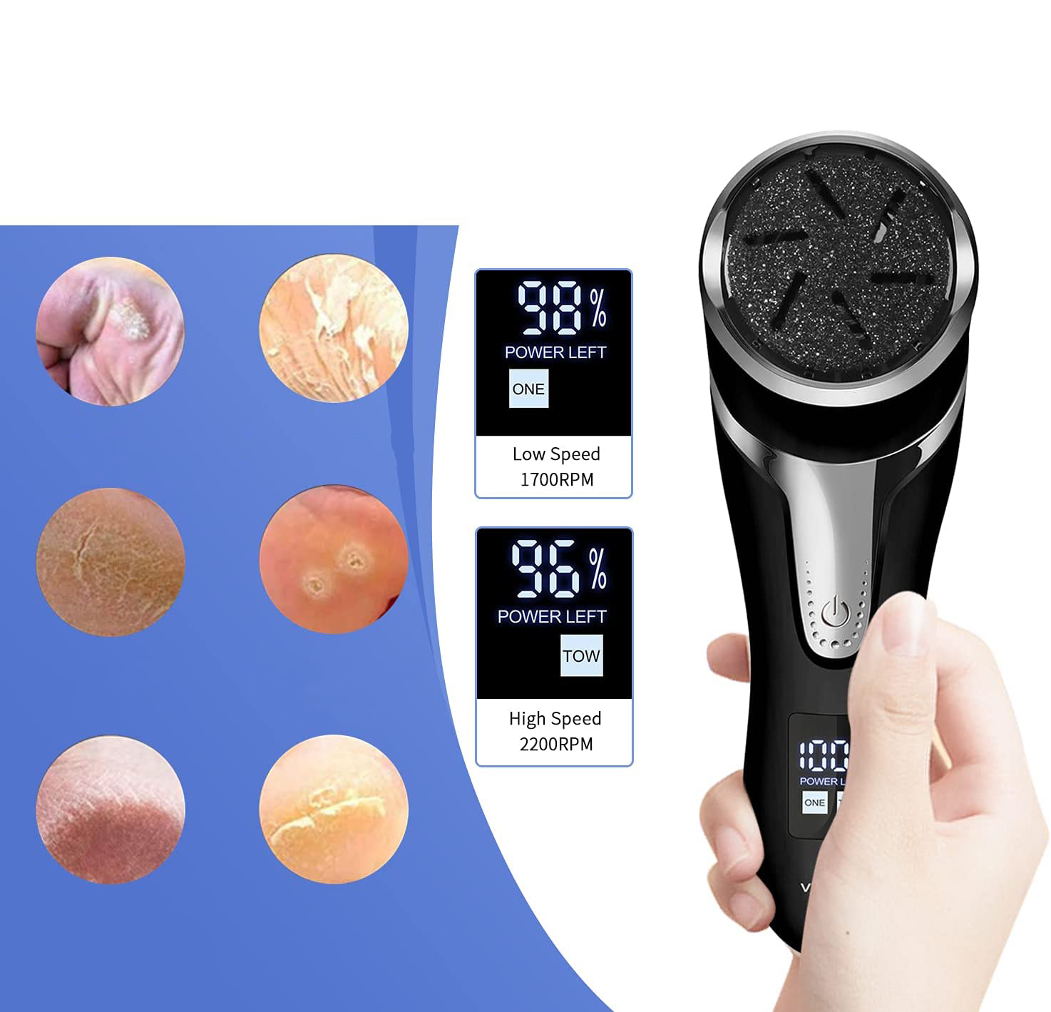 - Высокая скорость: 2200 об/мин, высокая скорость для стойких мозолей или глубокой очистки.