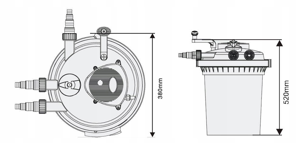✔вода из фильтра может вытекать и подниматься на высоту до 3 м (в зависимости от используемого насоса), например, в каскад, ручей