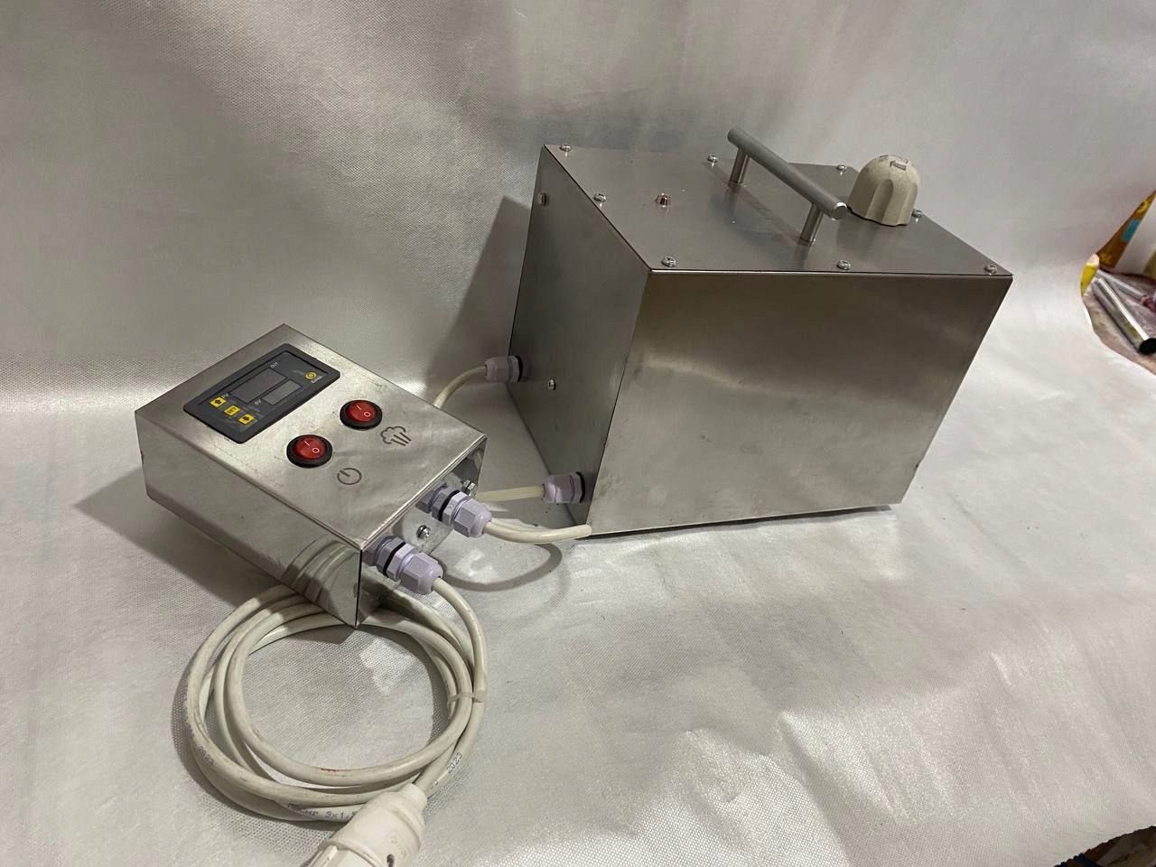 Парогенератор имеет панель управления, которая является важным элементом коптильного оборудования, обеспечивающим точный контроль процесса увлажнения воздуха в коптильной камере. Это позволяет добиться высокого качества копчения и оптимальных результатов приготовления.