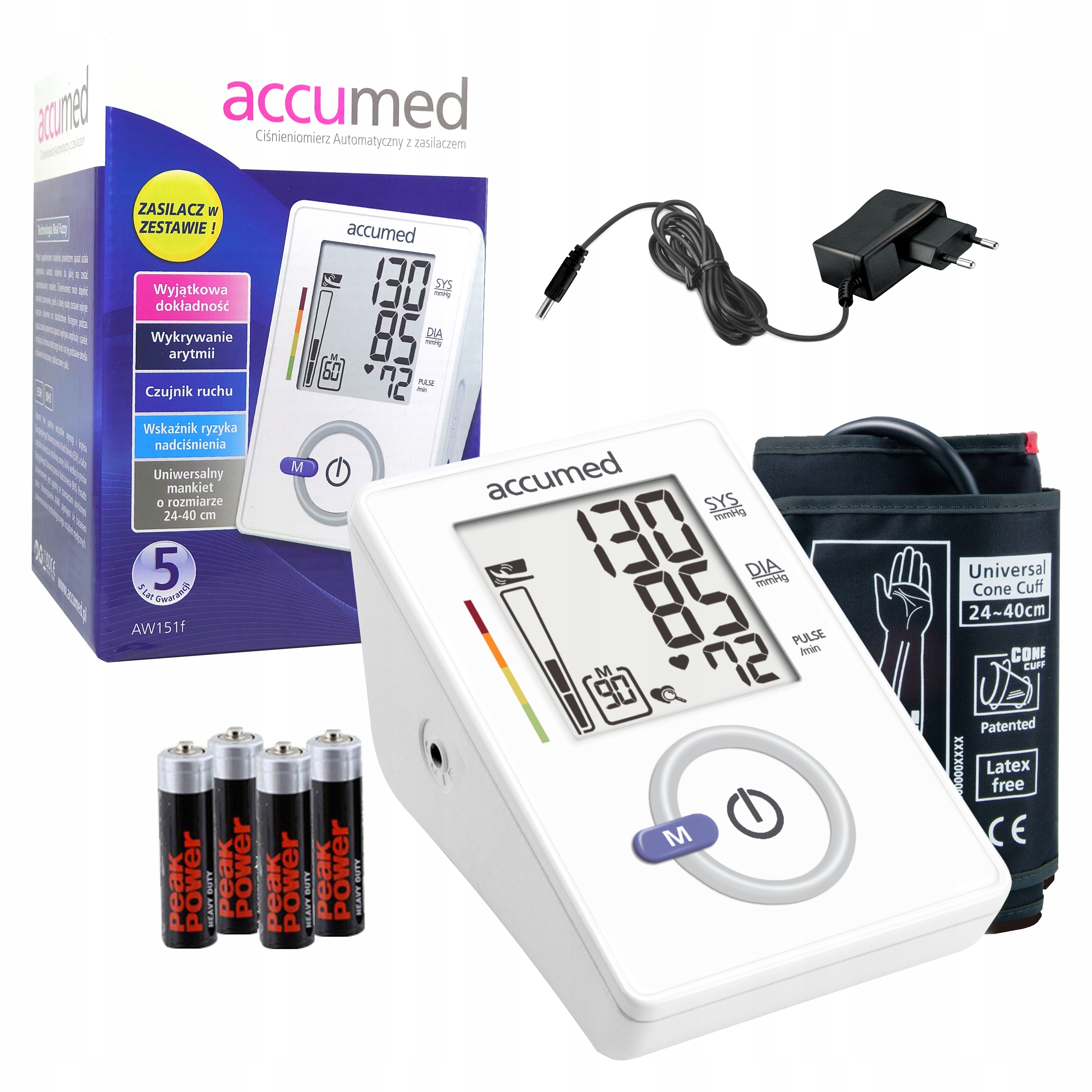 Современный Тонометр Accumed AW151f — продукт высочайшего качества от швейцарской компании Rossmax. Полностью автоматический тонометр, предлагающий все функции, необходимые для удобного, быстрого и точного измерения артериального давления на руке. Технология Real Fuzzy обеспечивает правильное надувание рукава. Для вашего удобства использована еще лучшая, качественная, увеличенная манжета размером 24 – 40 см, которая обеспечивает очень точные измерения, проще в использовании и экономит время при измерении артериального давления. Функция обнаружения нерегулярного сердцебиения позволяет отображать только достоверные результаты. Емкая память позволяет хранить до 90 результатов, а функция усреднения покажет среднее из 3 результатов. Благодаря использованию источника питания вас не удивит невозможность проводить измерения тогда, когда это вам больше всего нужно.