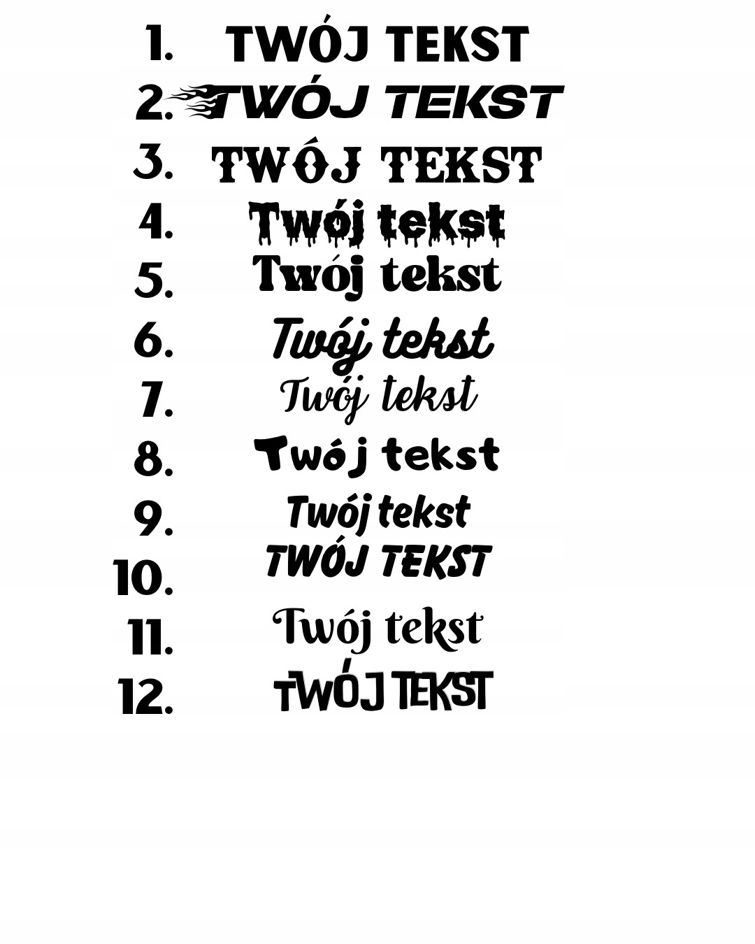 (1) Если вам нужна одна из наших надписей, просто введите номер от 1 до 9.