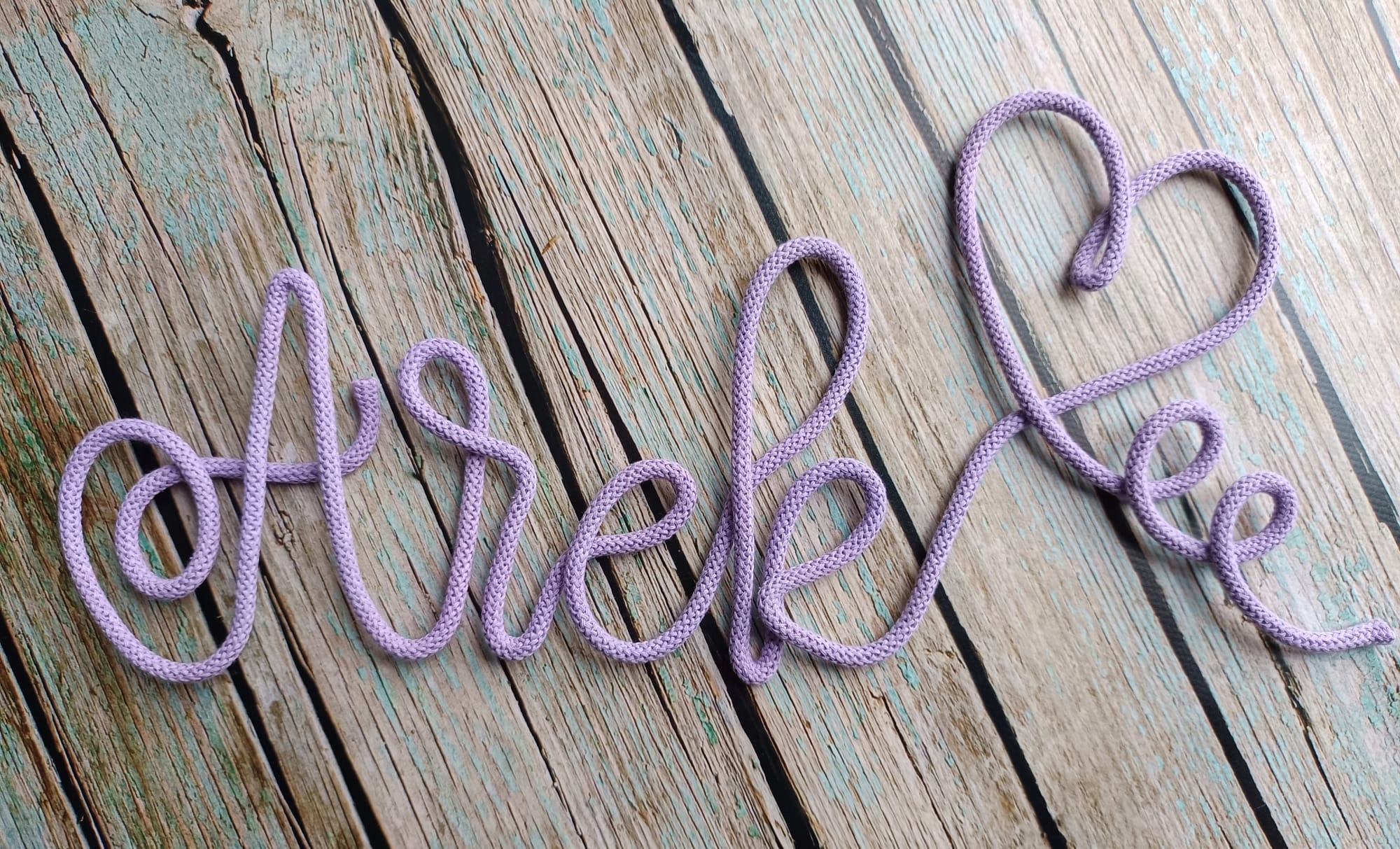 Я предлагаю уникальную надпись ручной работы из алюминиевой проволоки, обернутой в мягкую хлопковую нить. Я создаю каждую надпись в отдельном заказе - благодаря этому она уникальна и идеально подходит для ваших потребностей.