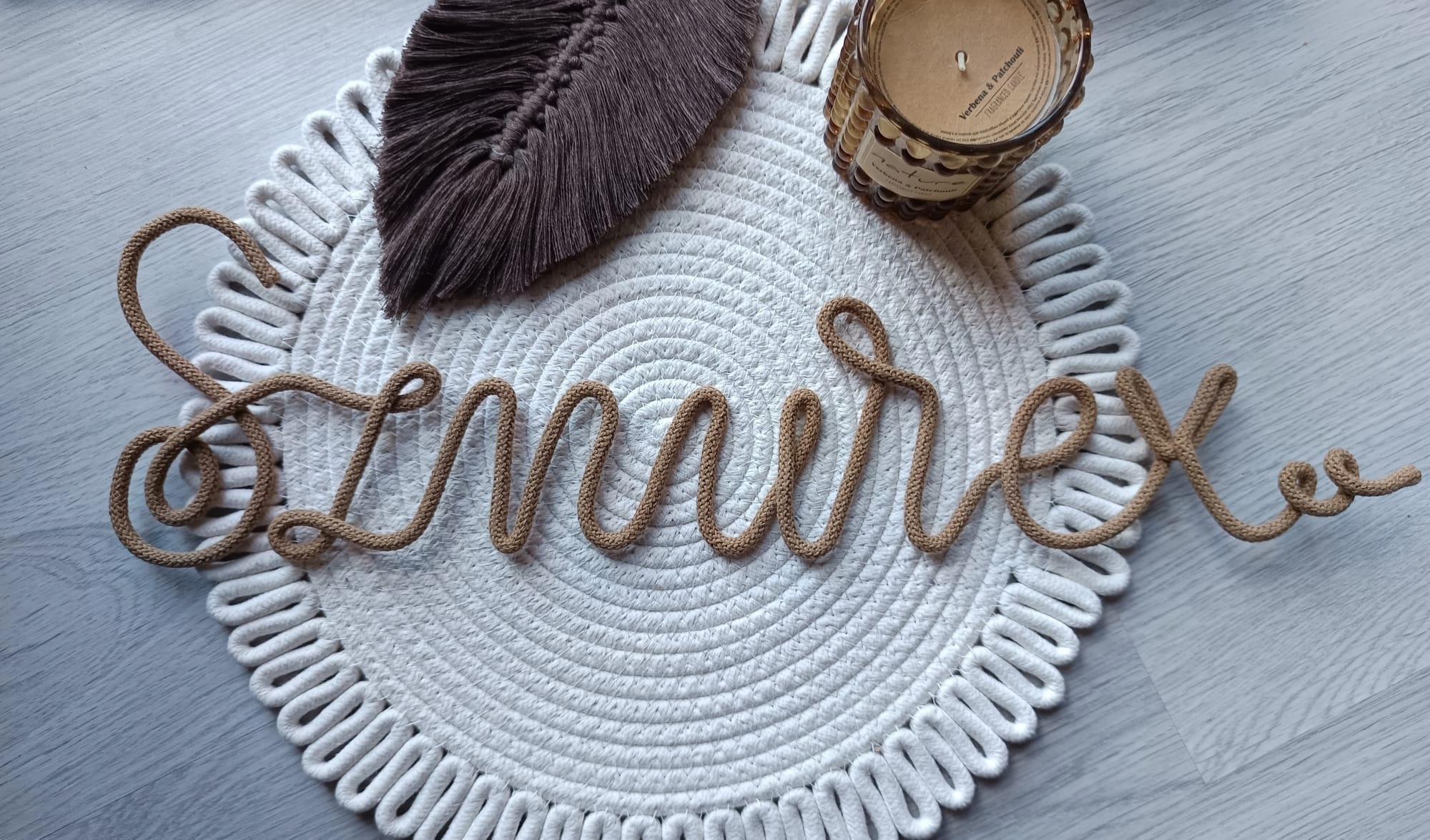Я предлагаю уникальную надпись ручной работы из алюминиевой проволоки, обернутой в мягкую хлопковую нить. Я создаю каждую надпись в отдельном заказе - благодаря этому она уникальна и идеально подходит для ваших потребностей.