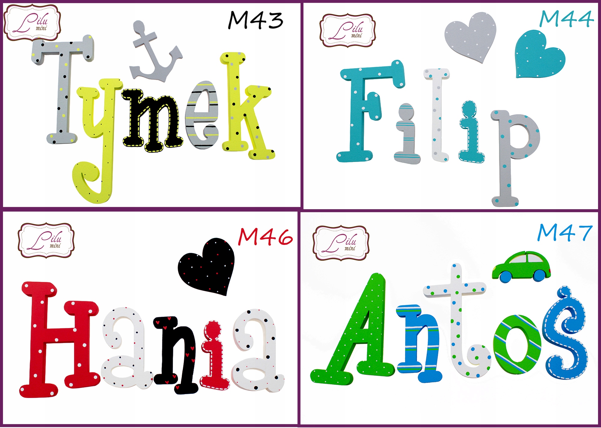 - В сообщении продавцу укажите: имя, которое вы заказываете, номер выбранного вами рисунка и тип декоров (например: Заказываю имя Зося, узор № М34 + 2x бабочка и 1 сердце или: Заказываю имя Kubuś, узор № M39 + 3x самолет)