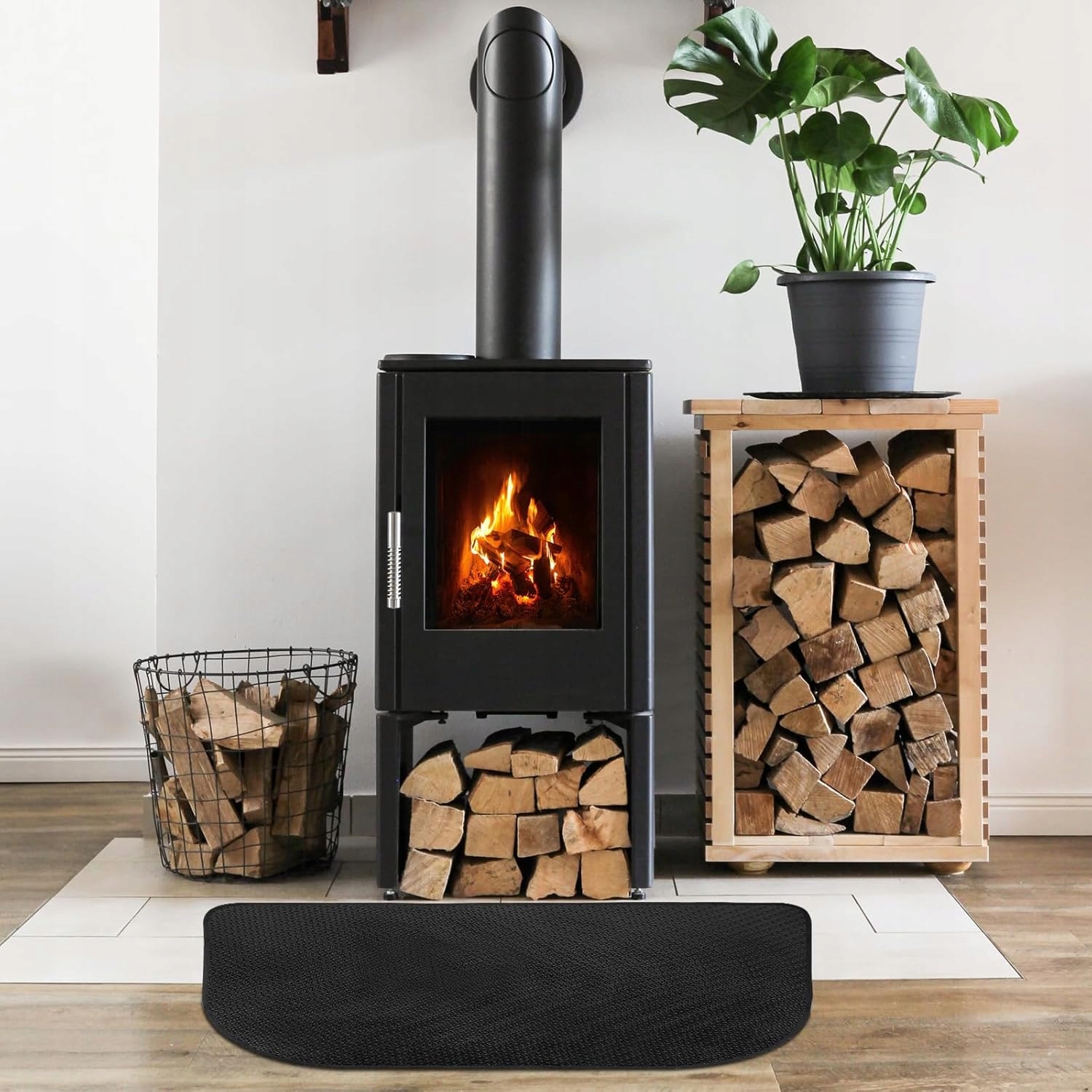 ПОЛУКРУГЛАЯ НАПОЛЬНАЯ ПЛИТА ДЛЯ КАМИНА, КОВР ОГНЕУСТОЙЧИВЫЙ ЗАЩИТНЫЙ, ЧЕРНЫЙ