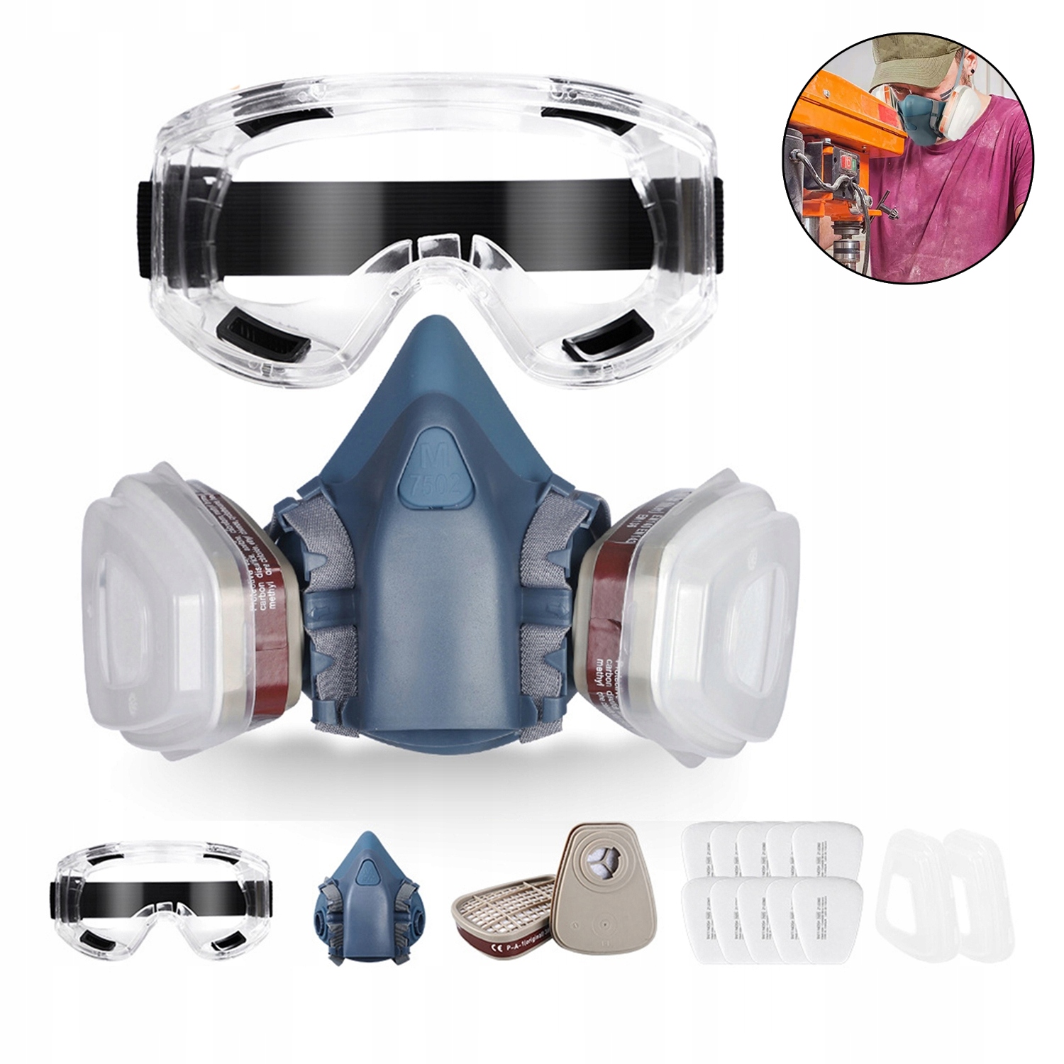 НАПІВМАСКА ФАРБА МАСКА 2x ВУГІЛЕВІ КАРТРИДЖІ + 10x ФІЛЬТРИ
