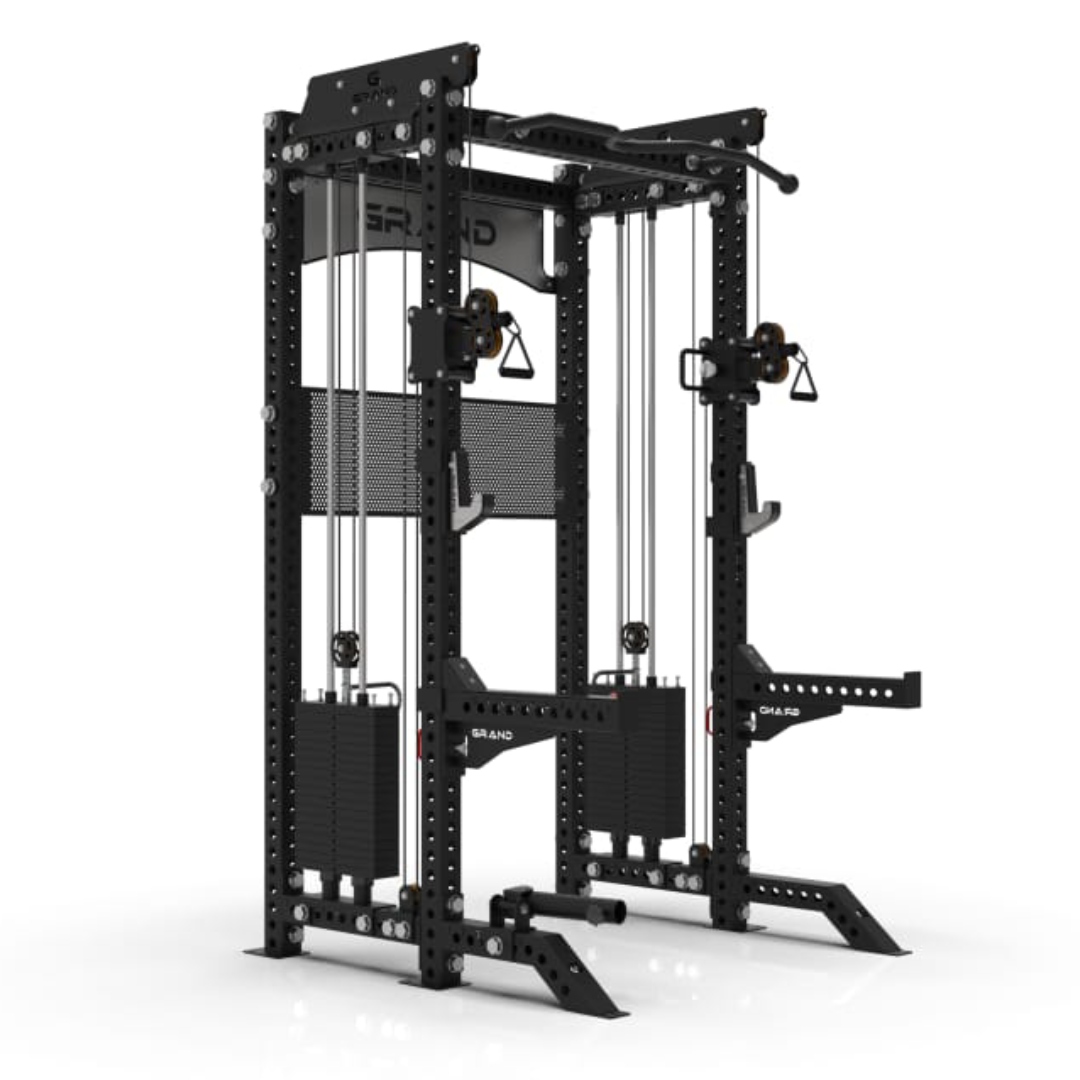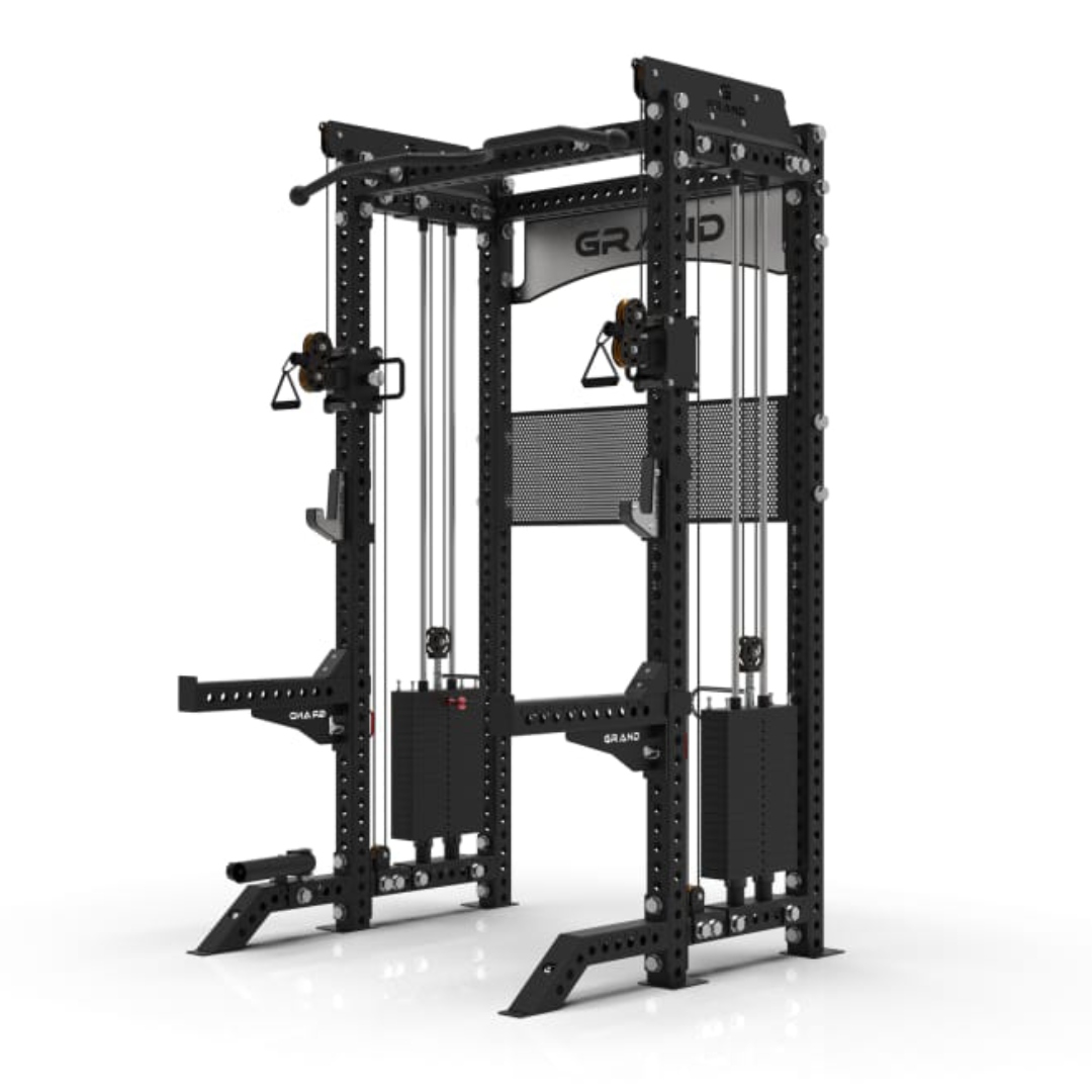 Half Rack R3 Grand - это продвинутая структура тренировок, которая сочетает в себе половину рату, ворота с лифтами и функциональные упражнения. Это оборудование создано для профессиональных спортивных залов, фитнес -клубов, личных тренировок, а также для частных лиц, которые хотят построить полную тренировочную зону дома. Устройство позволяет вам выполнять полный спектр силы, силы и функциональных упражнений, отвечая на потребности как начинающих, так и передовых пользователей.