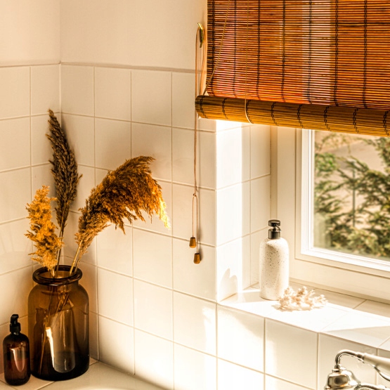 3️⃣ Бамбуковые жалюзи ассоциируются у нас с дальневосточным дизайном, который существует уже много лет. уже несколько сезонов не исчезает из каталогов дизайна интерьера. Эта щепотка Востока прекрасно подойдет как для кухни, где станет вдохновением для кулинарного безумия, так и для хорошо проветриваемых ванных комнат, создав атмосферу, как в лучших СПА-салонах.
