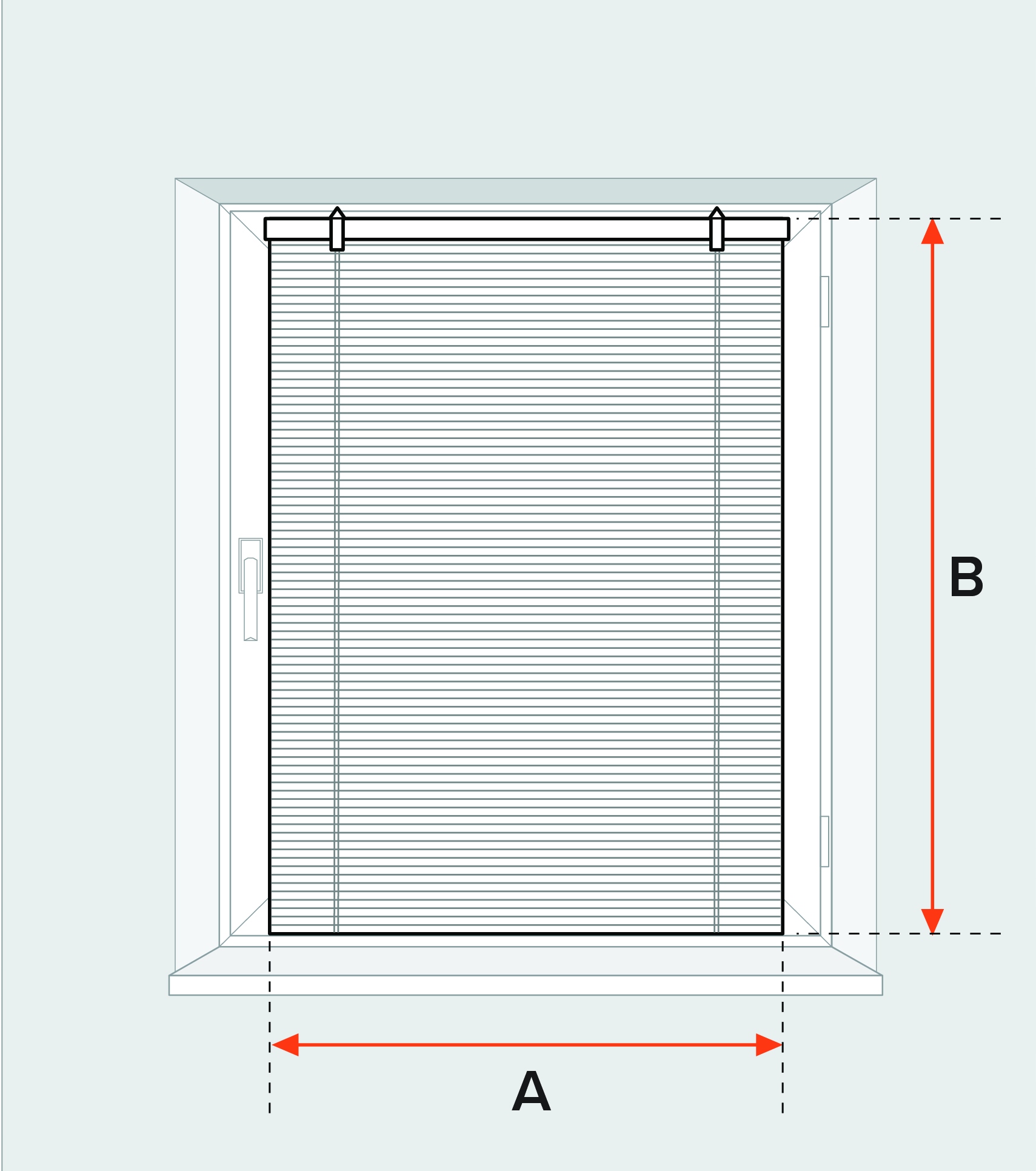 2 . Измерьте ширину окна или общее пространство, которое вы хотите закрыть — это и будет ширина вашей жалюзи. Помните, что указанная ширина — это значение для верхней планки или системы крепления. Сам материал будет на несколько мм уже введенного вами значения.