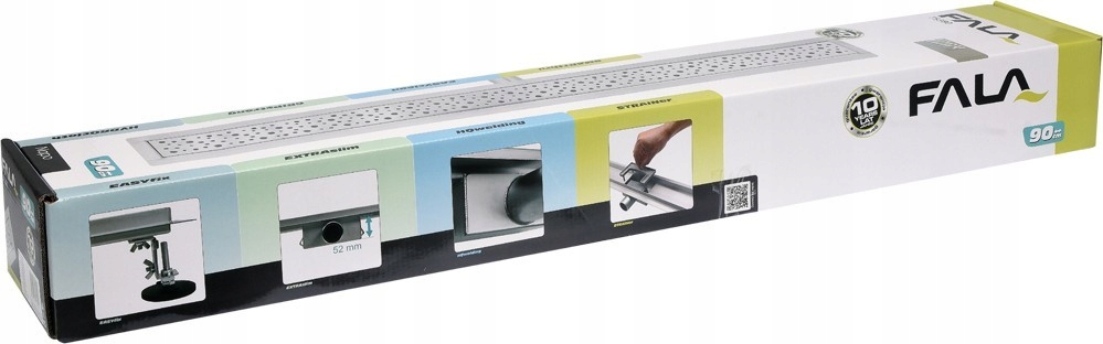 <р> Он изготовлен полностью из нержавеющей стали AISI 304, которая отличается устойчивостью к коррозии, моющим средствам и механическим повреждениям. <р> Душевые трапы Fala оснащены оборудованием, гарантирующим комфортную и эффективную работу на долгие годы: <р> - SMARTthru – специальное смотровое окошко означает 100% контроль проходимости и удобную очистку: <р> - EASYclean – легко содержать в чистоте благодаря крючку, входящему в комплект: <р> - GRIPstrong – ручки, стабилизирующие корпус, дополнительное придание жесткости конструкции в полу: <р> - HYDROcloth – уплотнительный коврик входит в комплект – необходимая деталь для гидроизоляции: <р> - STRAINer – эффективное и долговечное сито, предотвращающее засорение сифона и облегчающее постоянную эксплуатацию слива: <р> - HQwelding – качественные прецизионные сварные швы, гарантирующие герметичность слива: <р> - EXTRAslim – изготовлен из нержавеющей стали AISI 304 с очень низким сифоном, что облегчает установку: <р> - EASYfix – широкий диапазон регулировок по высоте, позволяющий подстроить слив под поверхность пола. <р> Вы можете установить водосток Фала без забот — на все наши водостоки предоставляется гарантия 10 лет! <р> Данные: <р> - длина желоба: 90 см <р> - узор сетки – Напо <р> - материал: нержавеющая сталь AISI 304 <р> - ширина: 70 мм (дополнительно воротник примерно по 2 см с каждой стороны) <р> - высота сифона: 52 ммЦель/использование
