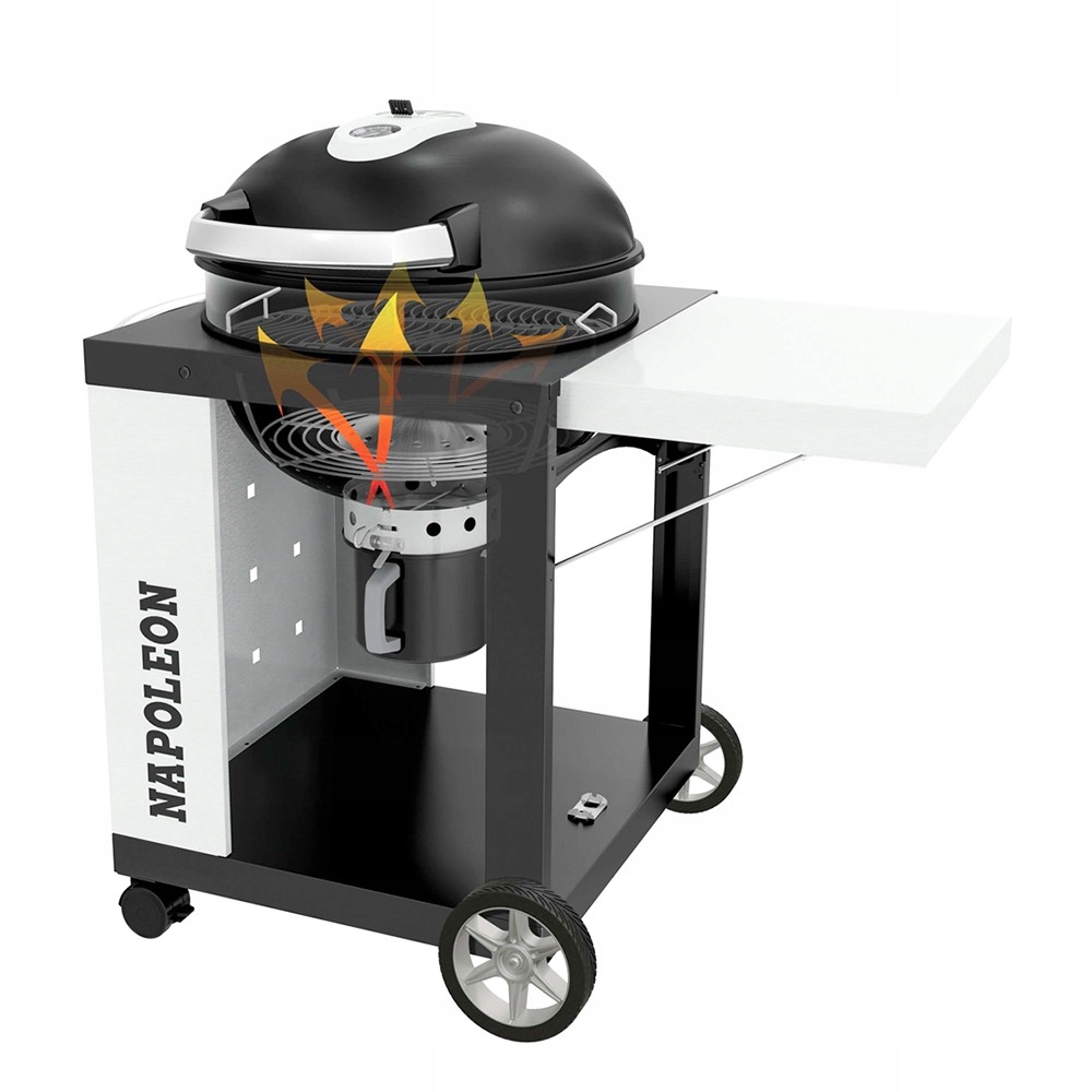 - Коническая вихревая система распределения тепла улучшает конвекцию в гриле, обеспечивая более высокую степень жарки и копчения, а также увеличивает экономию топлива, более эффективно направляя золу и угли в контейнер для золы.