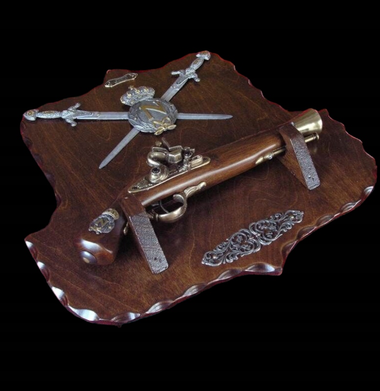 НАПОЛЕОНСКИЙ ПИСТОЛЕТ НА ДЕРЕВЕ С ГЕРБОМ И ДВУМЯ МЕЧАМИ