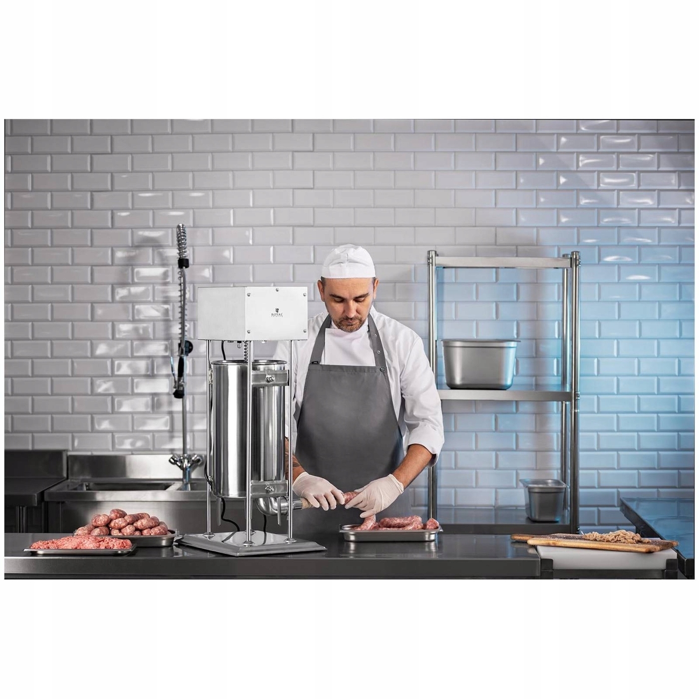 Электрическая работа для колбасы королевской общественности имеет 15 -литровый цилиндр и мощный двигатель 230 Вт. Благодаря высокой пропускной способности и производительности вы обрабатываете большое количество мяса за очень короткое время. Операция непревзойденная. Вы можете свободно установить скорость заготовки для колбас, используя контроллер. Вы контролируете поршень с помощью педали, так что у вас всегда есть бесплатные руки для других задач.