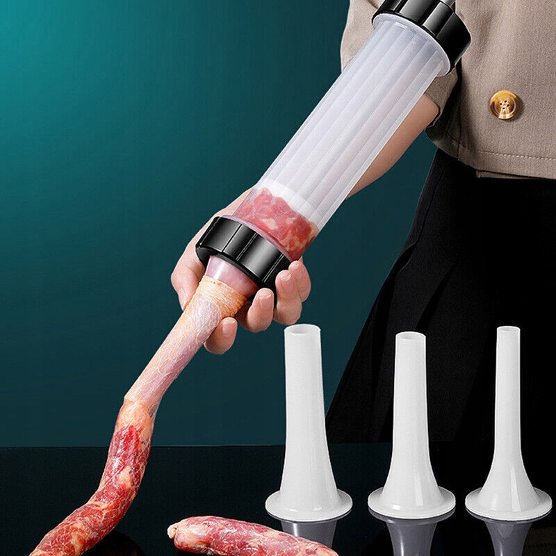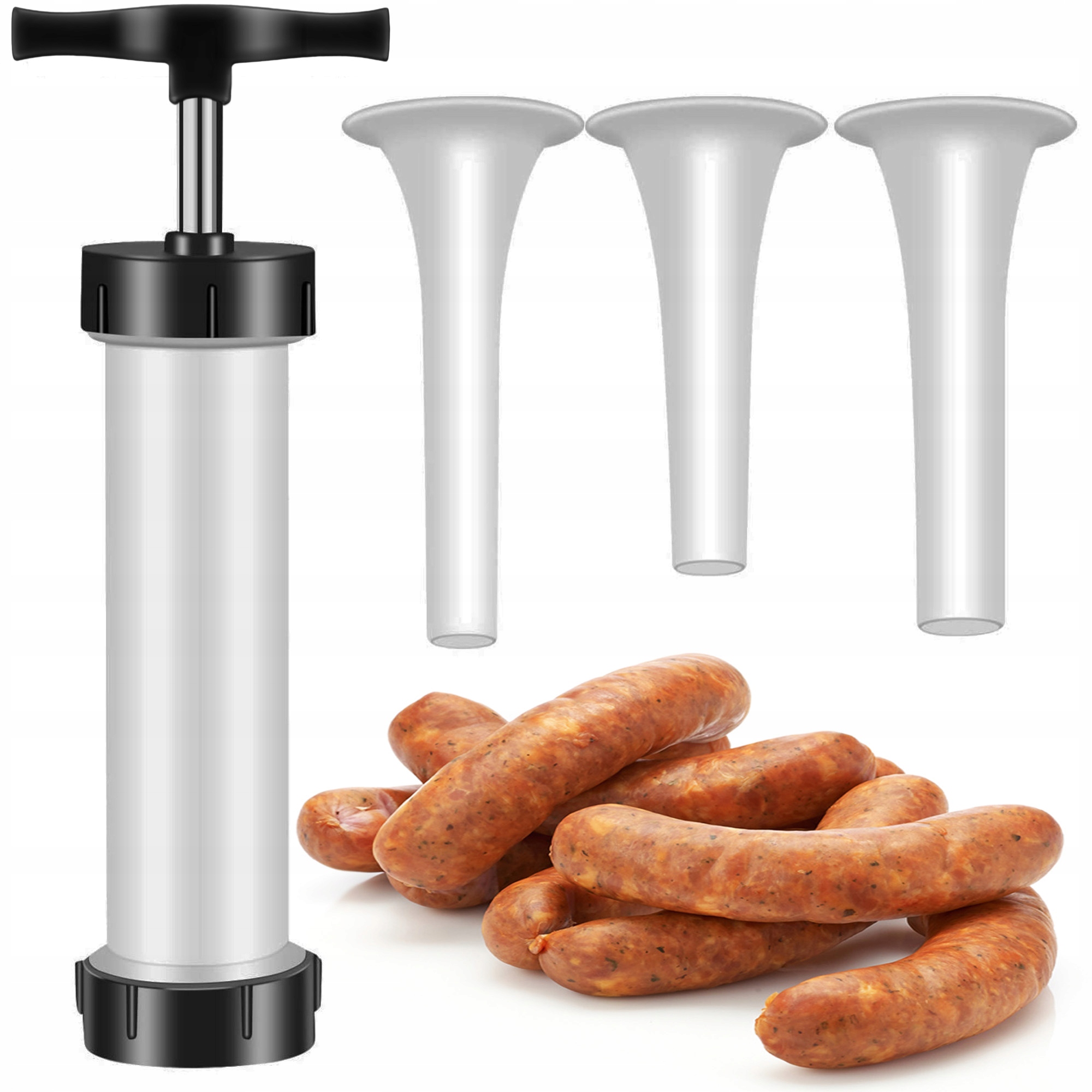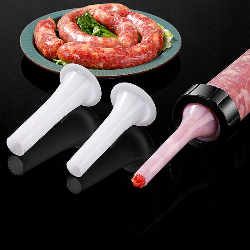 - В наборе 3 воронки для различных продуктов: от тонких сосисок и сосисок кабанос до более толстых сосисок