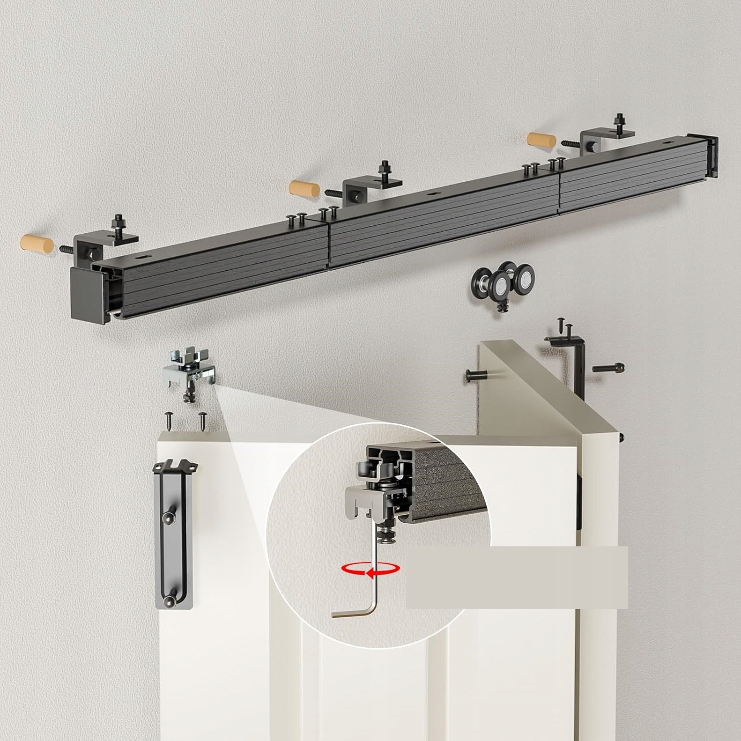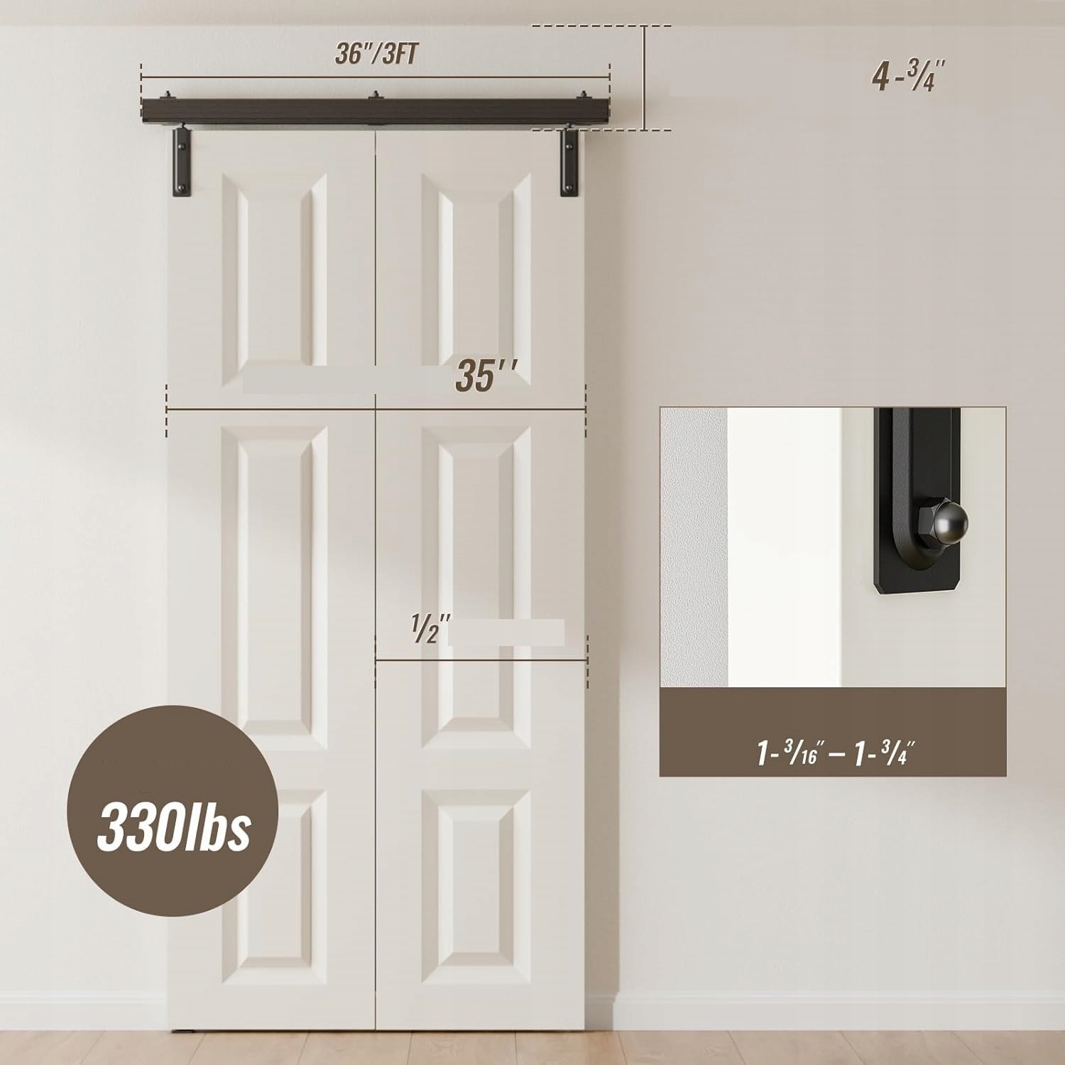 - [Напоминания]: направляющая 91,4 см подходит для макс. ширина дверного полотна 17-1/5,1 см; подходит для толщины двери: 1-3/40,6 см ~ 1-3/10,2 см (30 мм ~ 45 мм); Грузоподъемность: 150 кг (150 кг); требуемый зазор составляет не менее 4-3/10,2 см от верхней части двери и потолка.