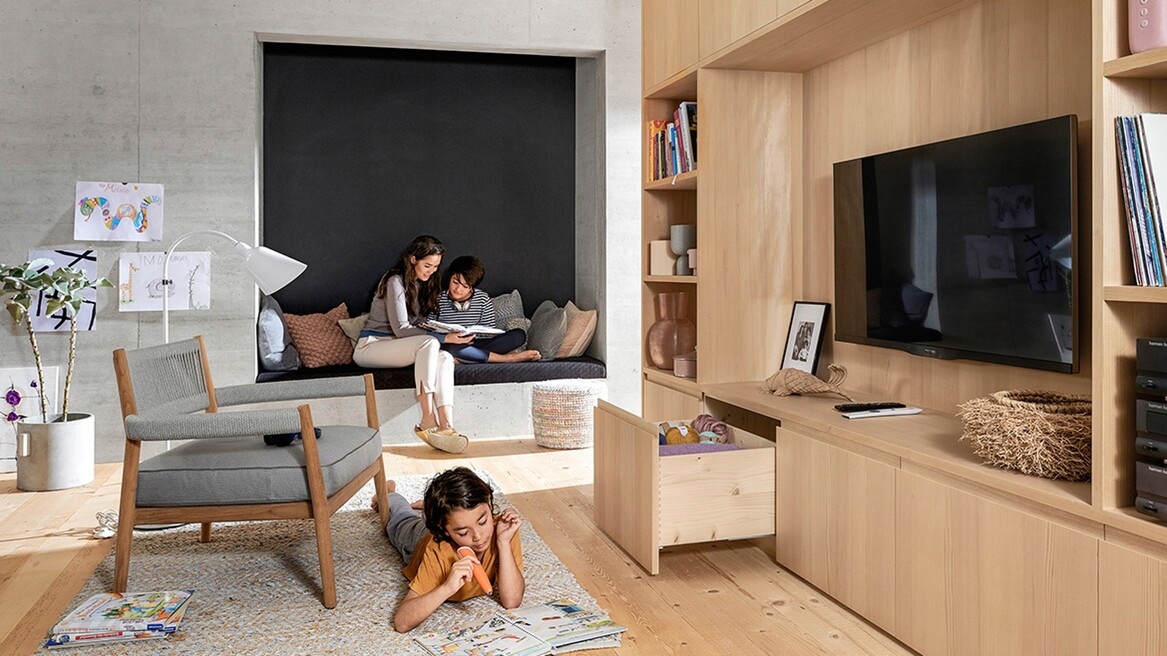 С этой системой покрытых направляющих можно реализовать очень широкие, высокие и глубокие ящики на полу. Потому что это отличается от стабильности и низких значений падения- даже когда ящик полностью загружен. Таким образом, вы получите ценное полезное пространство во всех комнатах