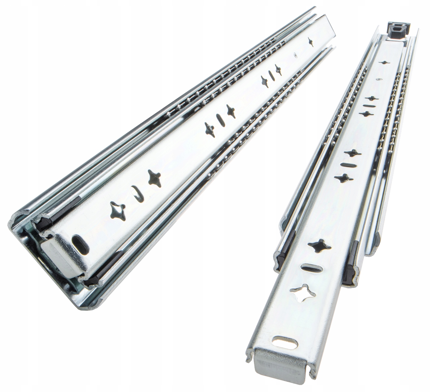 Шариковая направляющая усиленной конструкции, грузоподъемность до 110 кг. Эта особенность, вместе с большим выбором ширины (до 1200 мм), делает его подходящим для многих применений, в том числе: для ящиков под кроватями, для создания ниш под лестницей, в шкафах для мастерских типа RACK, в автобусах, кемперах или лодках. .