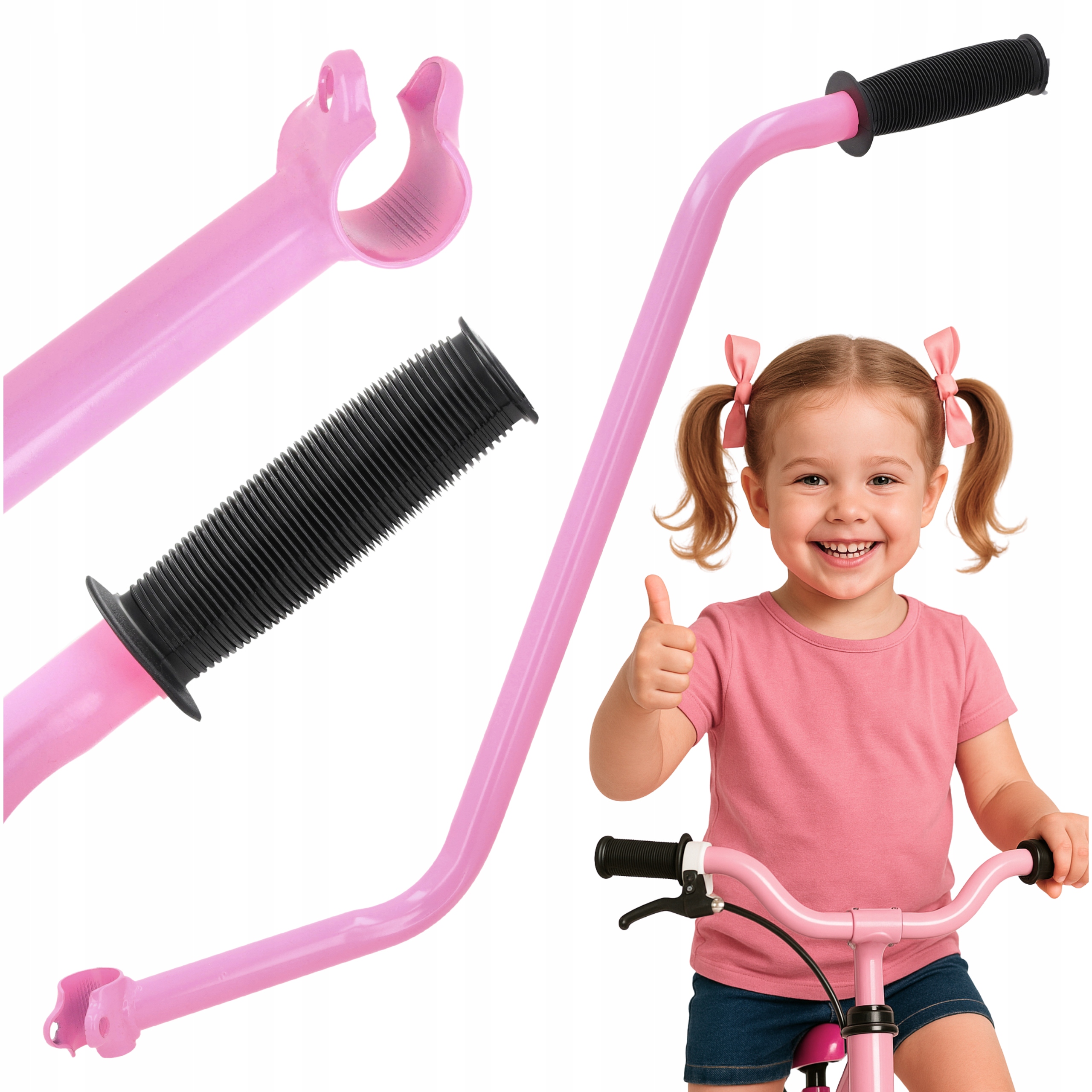 благодаря солидной конструкции и удобной ручке , родитель может полностью контролировать путь вождения, устраняя риск падений и опасных ситуаций. Простая сборка и универсальное сопоставление делает продукт важным аксессуаром для каждого маленького велосипедиста.