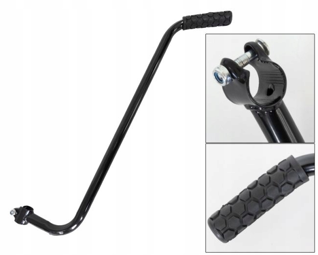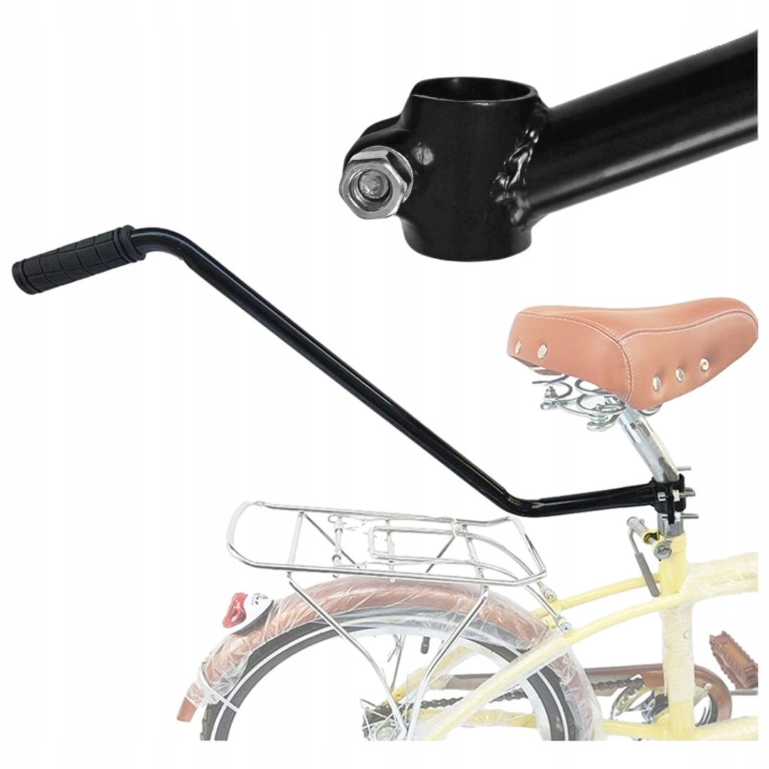 Металлическая ручка с ручкой, крепящаяся к стойке седла , позволяет удобно закрепить ребенка для балансировки на велосипеде.