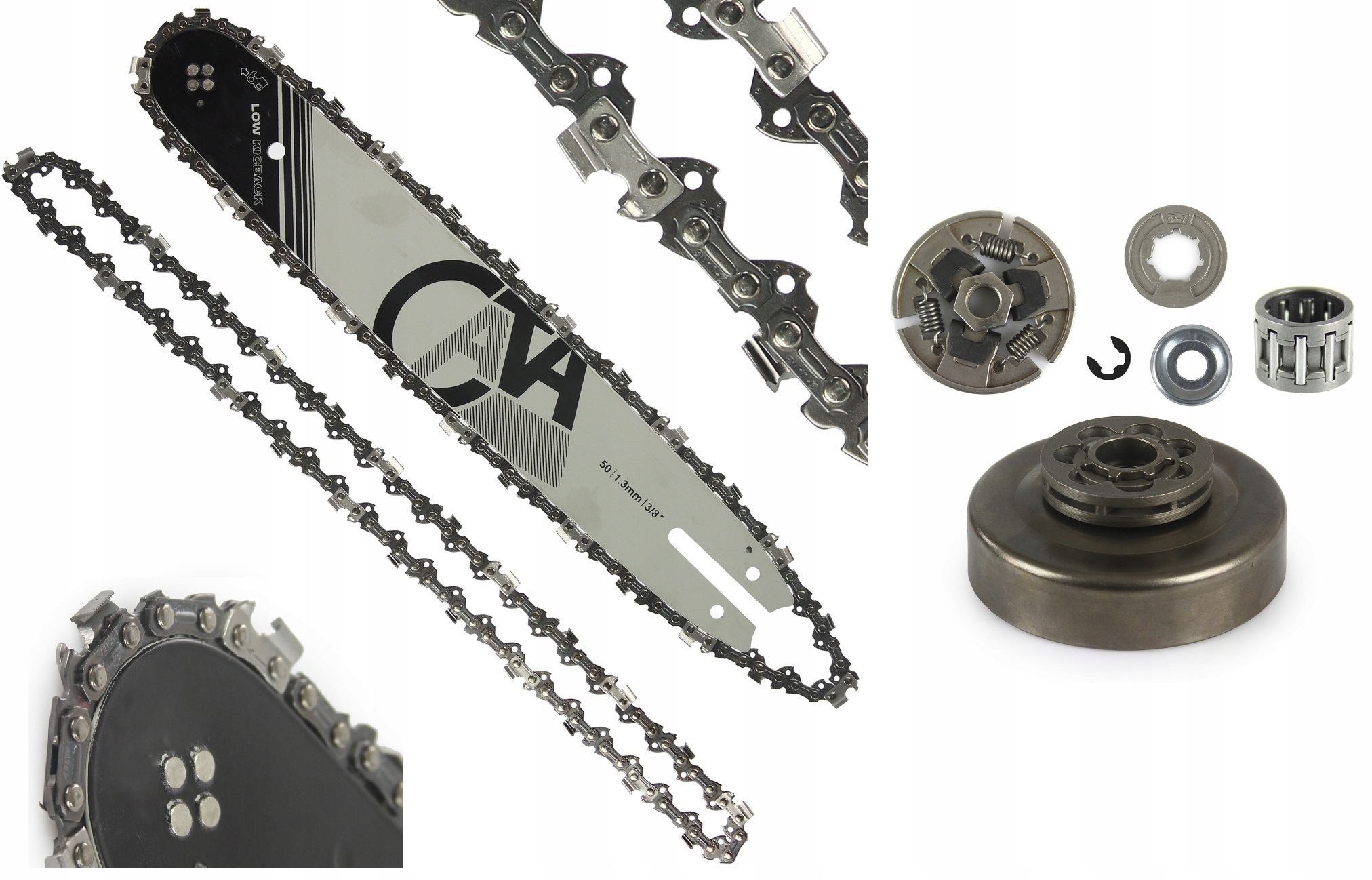 Направляющая изготовлена из очень твердого материала, устойчивого к истиранию и высоким температурам, образующимся при работе бензопилы. Они хорошо работают в самых сложных условиях, не повреждаясь. Они прекрасно передают мощность пилы на эффективность пиления. В комплект входят две цепочки.