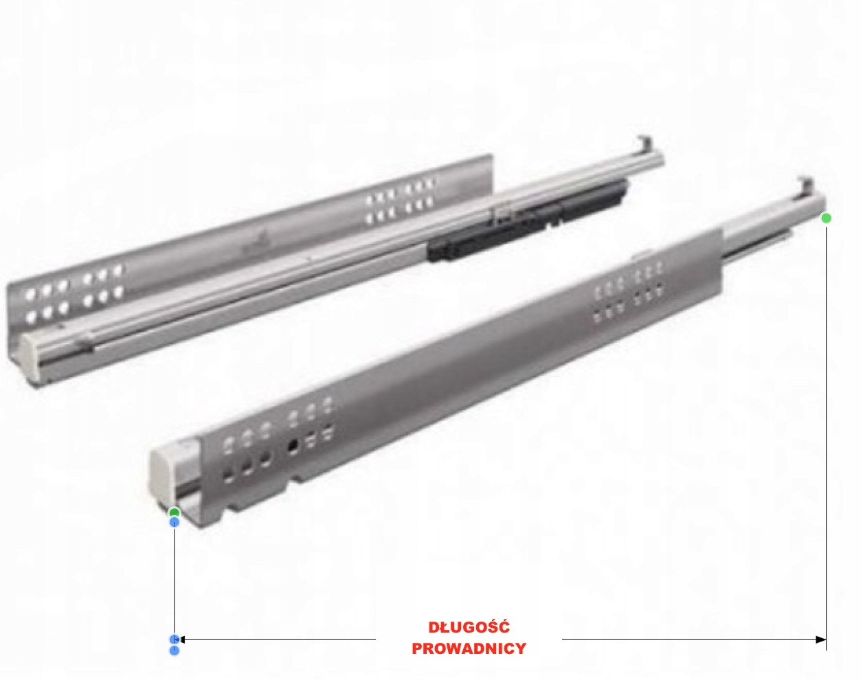 Это число указывает длину направляющей, которая измеряется со «вставленным ящиком» ( расположение направляющих как при вставленном ящике - как показано на рисунке)