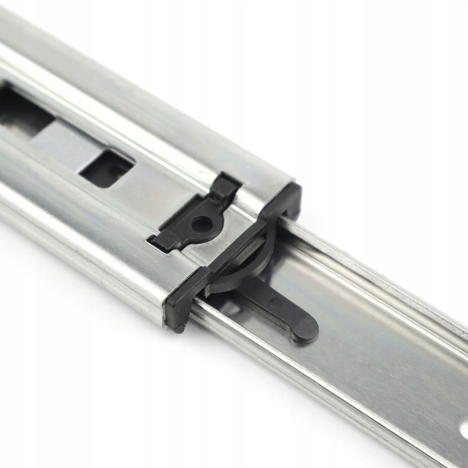 Долговечность - направляющие очень прочные и выдерживают нагрузку до 35 кг. Благодаря этому выдвижной ящик устойчив, нет опасений, что он опрокинется или повредится, кроме того, они изготовлены из более толстого листового металла, чем направляющие конкурентов, а значит, более прочные и устойчивые к повреждениям. Благодаря этому направляющие можно использовать долгое время без необходимости замены.