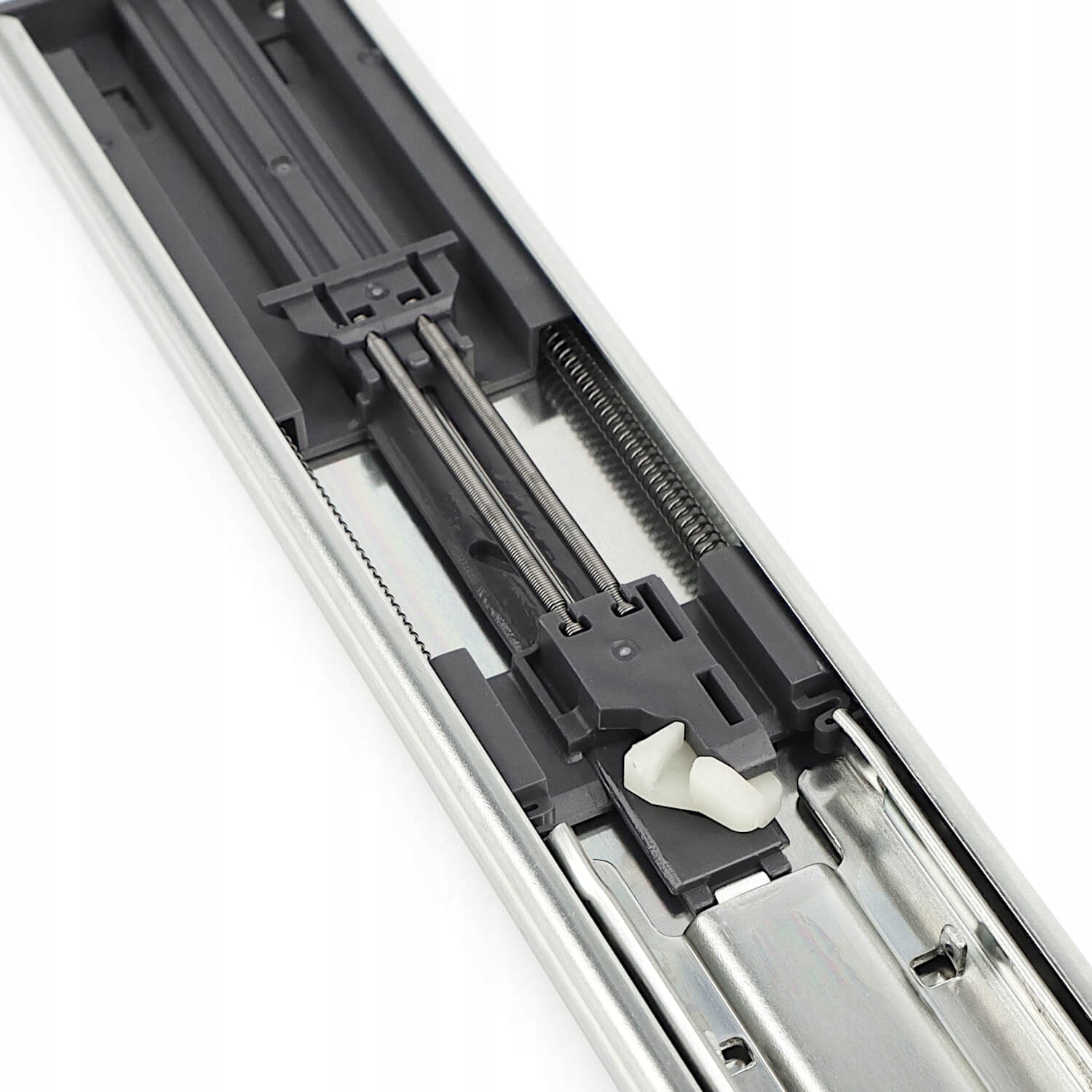 Шариковые направляющие L-450 мм с функцией Push to Open и замедлителем — это продукт, который удобен в использовании и предлагает множество преимуществ. Благодаря функции Push to Open открыть ящик легко и интуитивно — просто нажмите на переднюю часть, и ящик откроется сам. В свою очередь, замедлитель обеспечивает плавное и контролируемое закрывание ящика, что предотвращает его резкое закрытие и минимизирует риск повреждения содержимого.