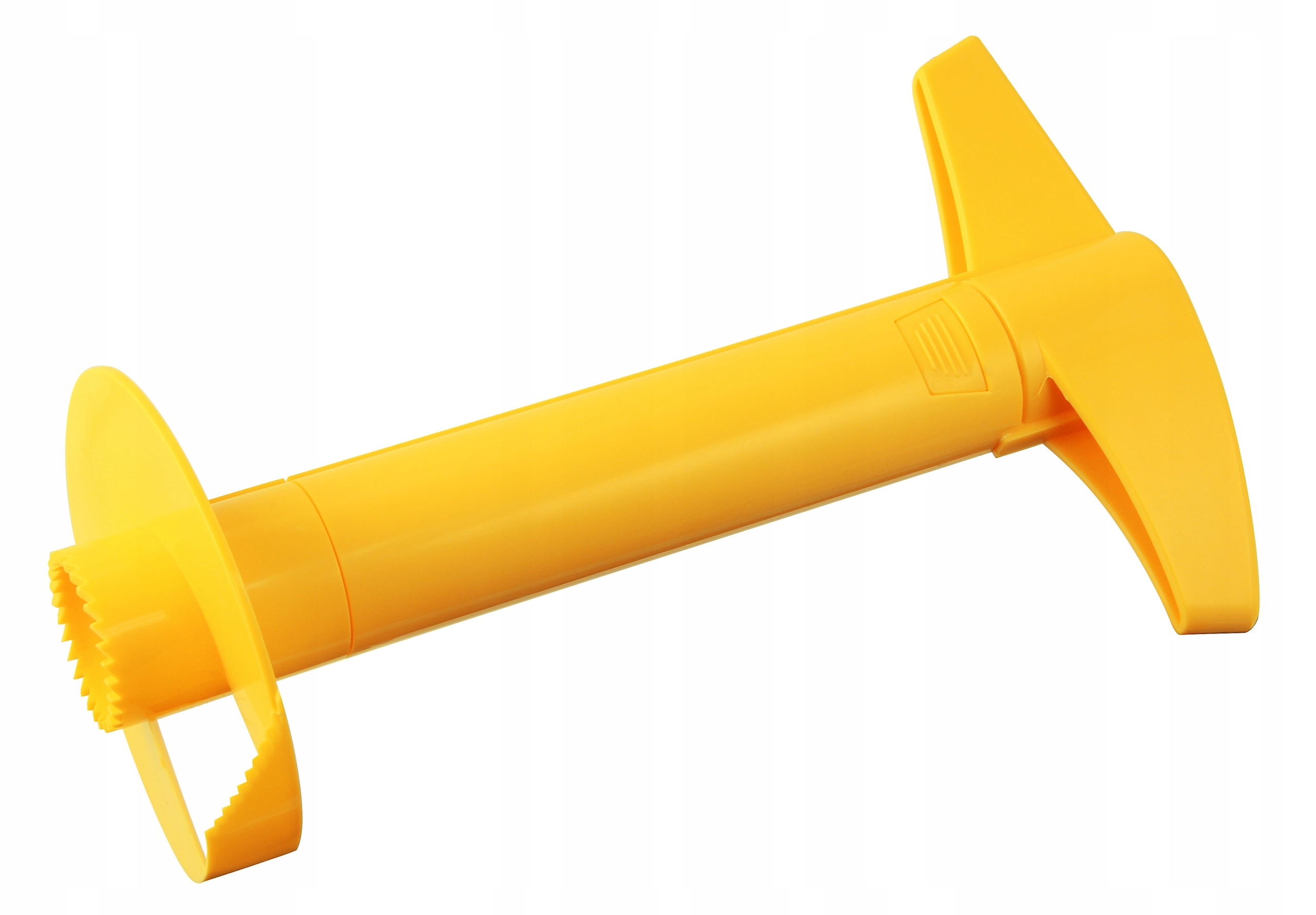 Инновационная ножница для ананасов (23 см) от Fackelmann яркого ананасового цвета сделает за вас якобы утомительную работу. Вот как это работает: отрежьте верхнюю зеленую часть, прикрепите нож для ананасов Fackelmann и вкрутите его. Достаньте ананас, удалите функциональную часть и удалите готовые ломтики.
