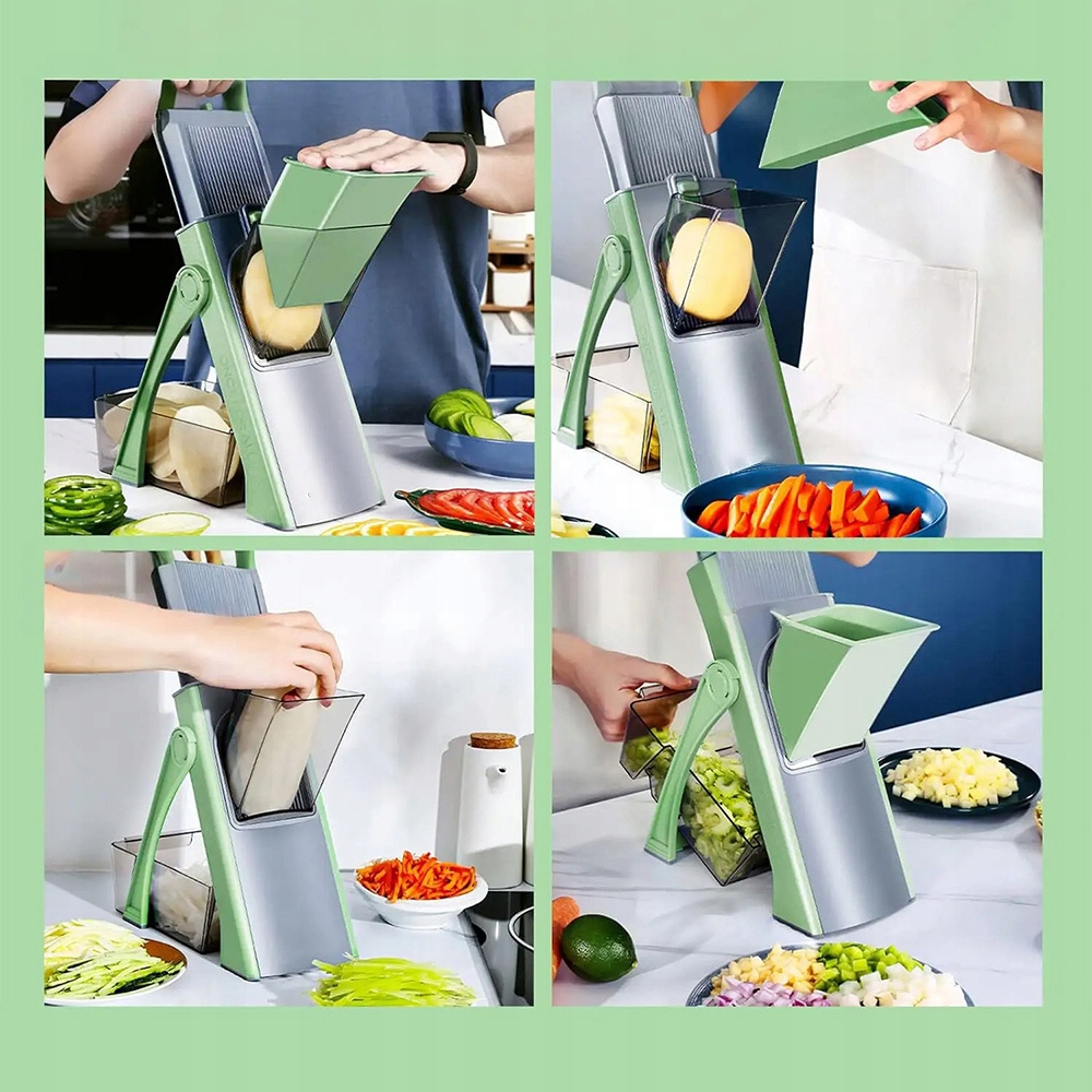 🔪 Позволяет безопасно нарезать, шинковать и измельчать за считанные секунды, с регулируемой толщиной от 0,1 до 8 мм.