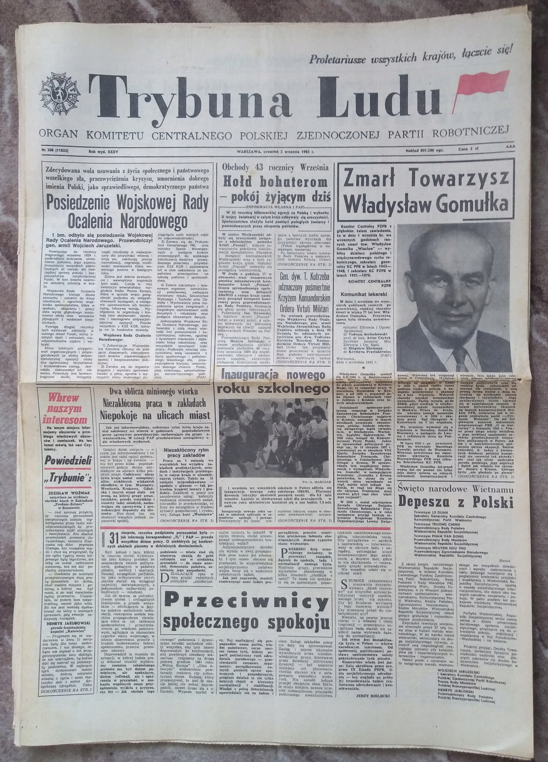 3 номера газеты Trybuna Trybuna 1982 года, со времен: 2.ix. (не -баловая копия, без страниц от 3 до 6), 12.xi., 13.xii. (неполная копия, без страниц от 3 до 6); Газеты в хорошем состоянии, как на фотографиях. Доставка газет будет сложена пополам.