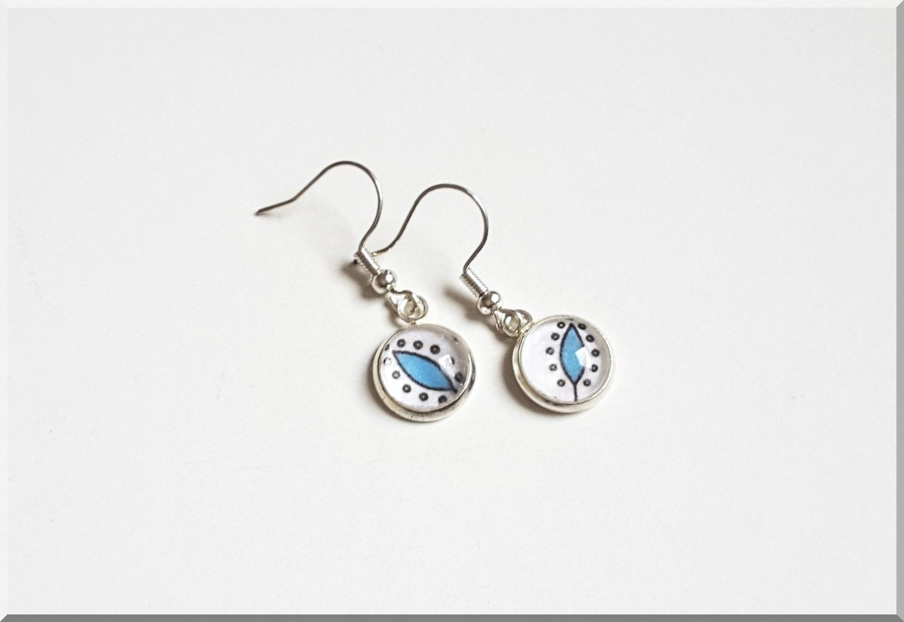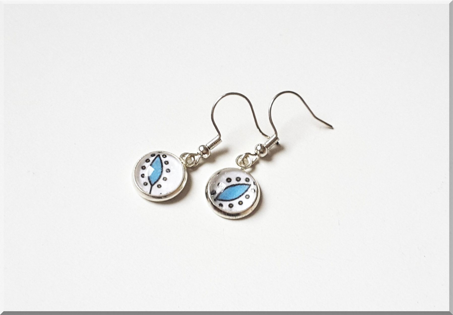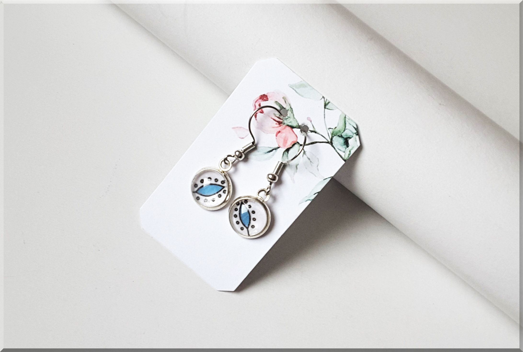 Красивые народные серьги со стеклянным кабошоном с кашубским узором.