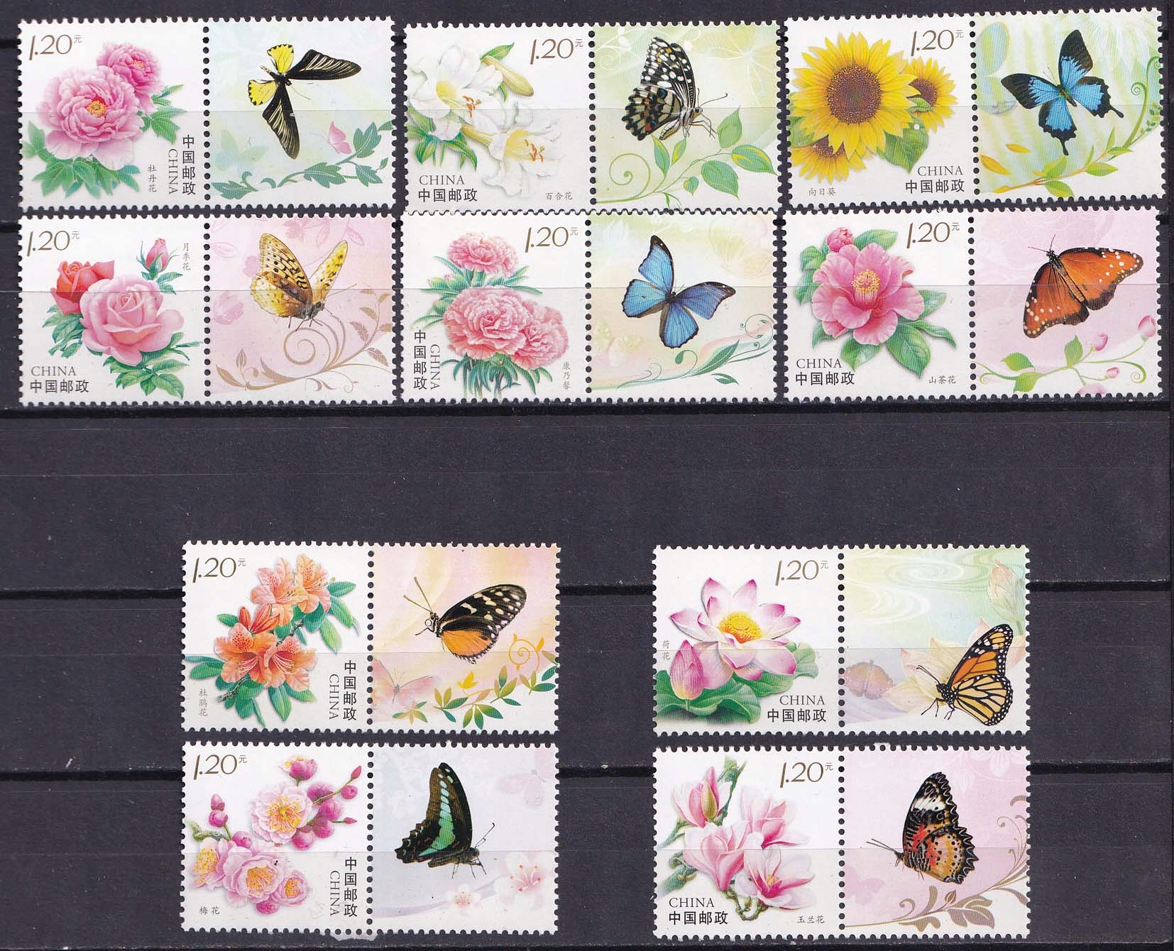 НАРОДНИЙ КИТАЙ** Мі 4285-94+Zf Квіти, Тварини, Метелики