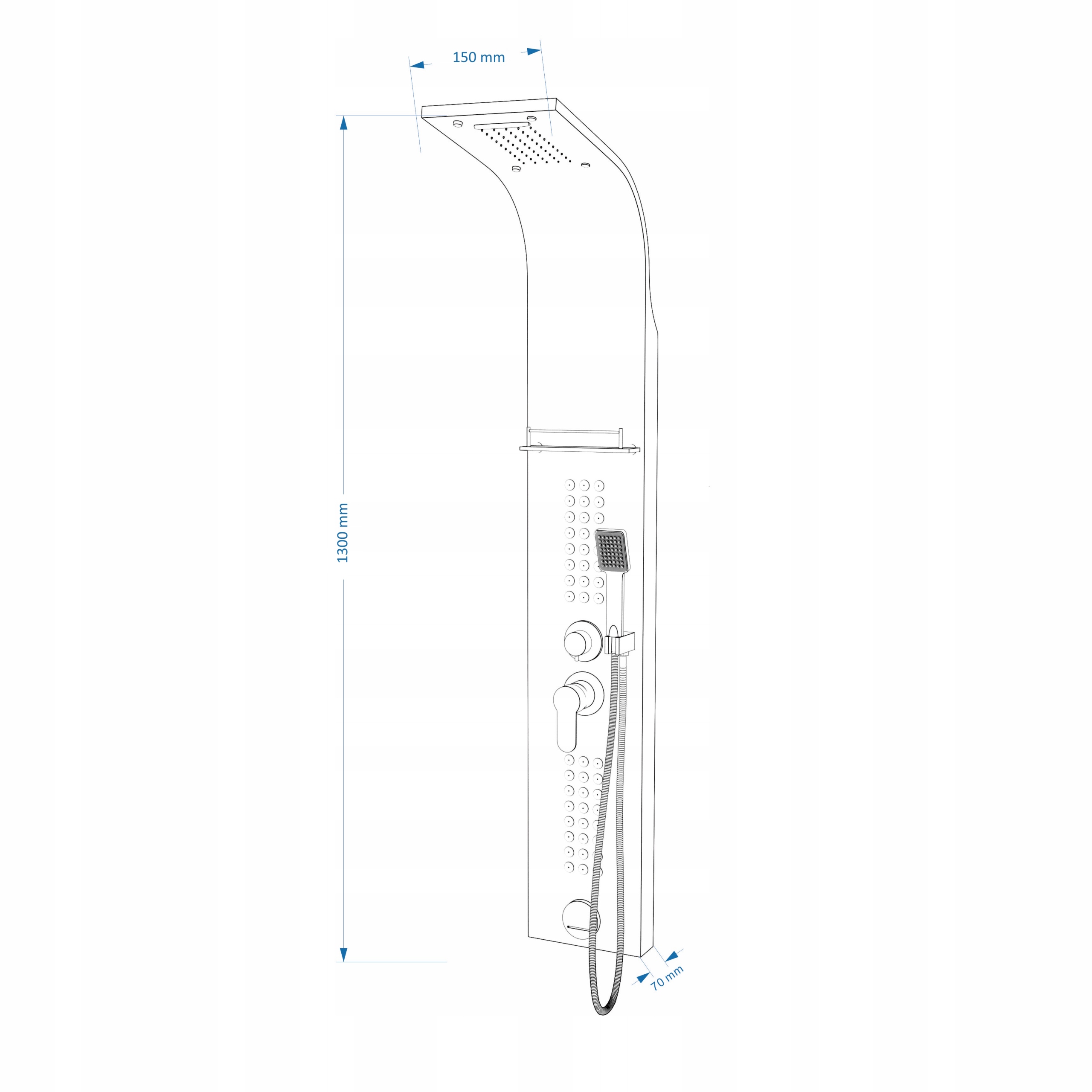 Narożny panel prysznicowy z hydromasażem + wodospad +wylewka +szklana półka