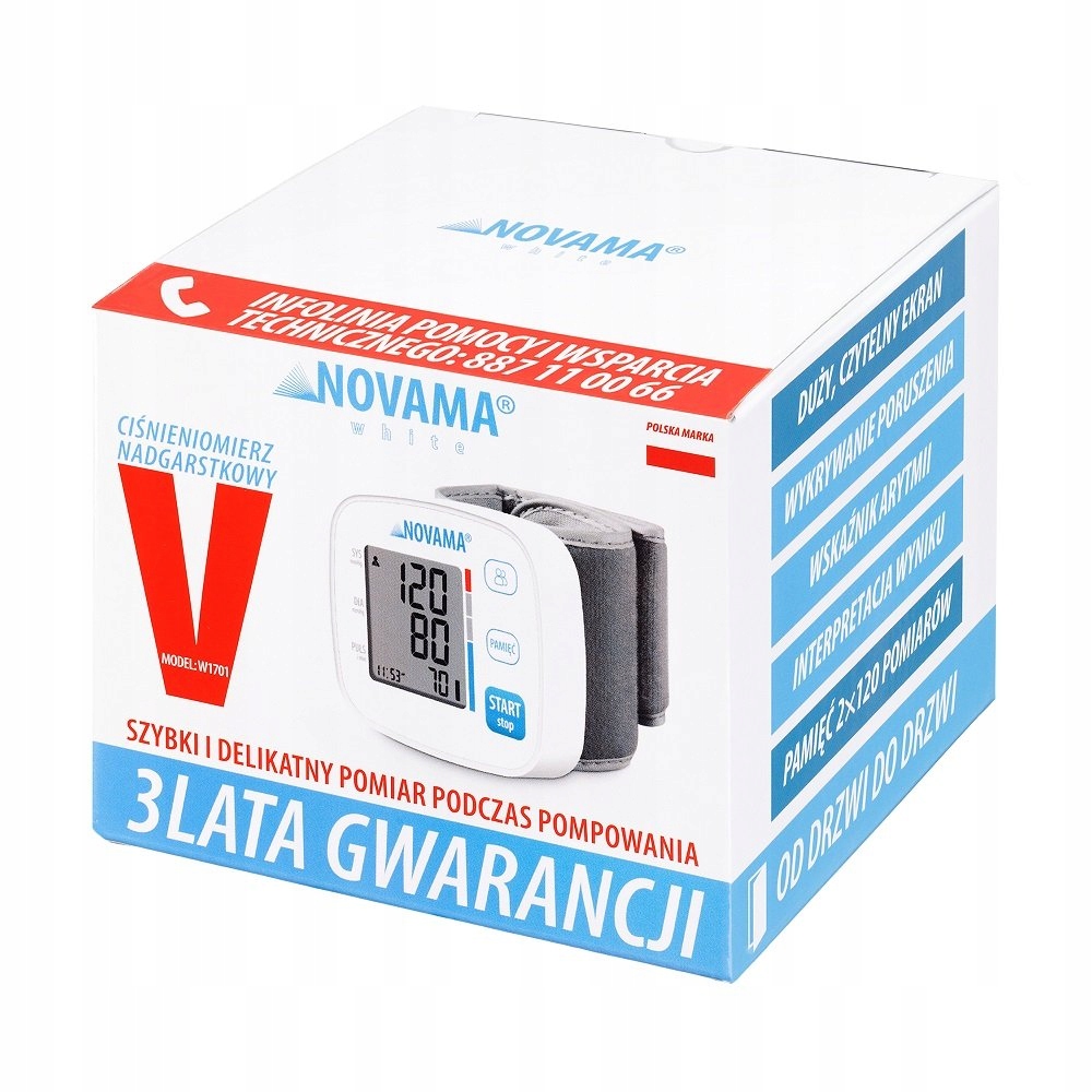NOVAMA WHITE V — это наручный тонометр нового поколения, который предлагает функции и возможности, превосходящие стандарты, при сохранении доступной цены. - чтобы выбор тонометра оставался простым. Эта модель оснащена новейшими технологиями, которые сокращают время измерения и исключают ошибки, такие как измерение во время сцеживания и обнаружение движения во время измерения.
