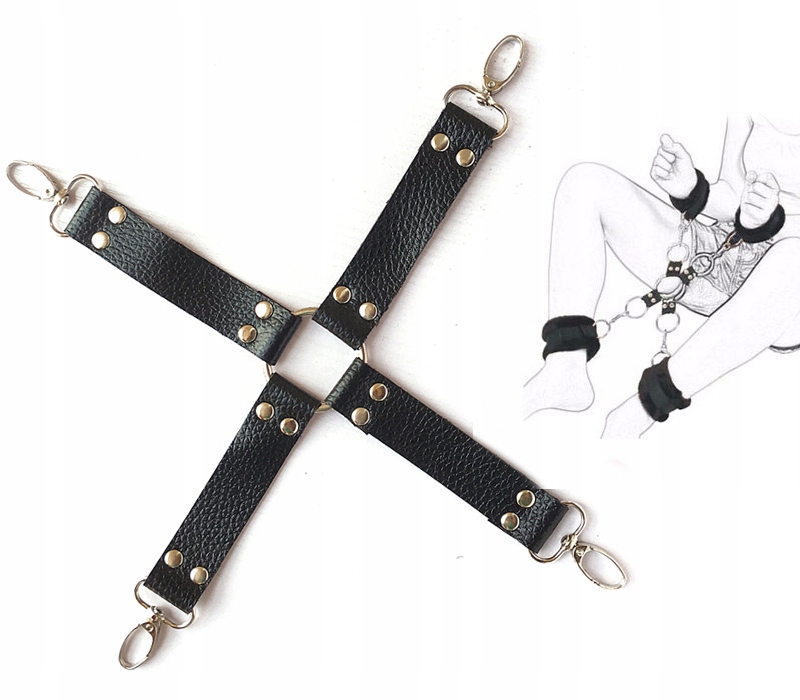 - регулируемые манжеты на щиколотке с металлической цепочкой на карабинах, общая длина 30 см, изготовлены из экологической кожи с мягким мехом внутри.