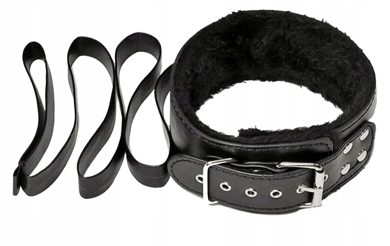 - регулируемое запястье наручники с металлической цепочкой на карабинах, общая длина 23,5 см, из экологической кожи с мягким мехом внутри.