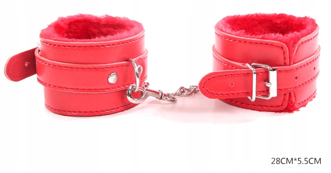 - регулируемое запястье наручники с металлической цепочкой на карабинах, общая длина 23,5 см, из экологической кожи с мягким мехом внутри.