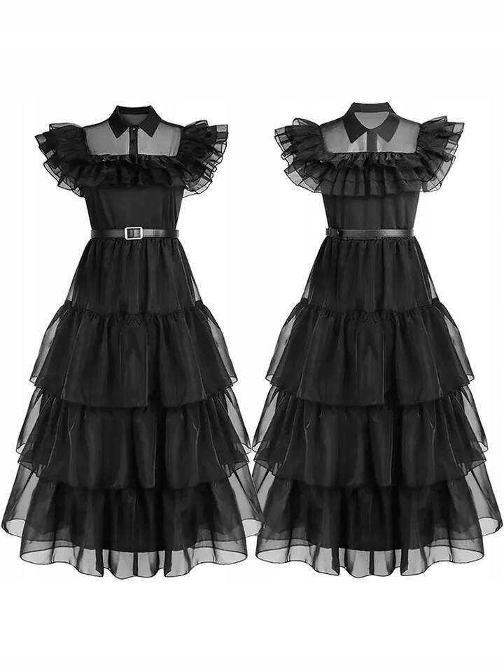 ✏ Костюм, который вдохновляется нашим нарядом, воспроизводит необычное платье Addams в среду . Уникальное атласное платье было тщательно сшито из материалов, безопасных для нежной кожи ребенка. Руковочный шифоновый оттенок платья придает ему уникальный персонаж, особенно во время танца